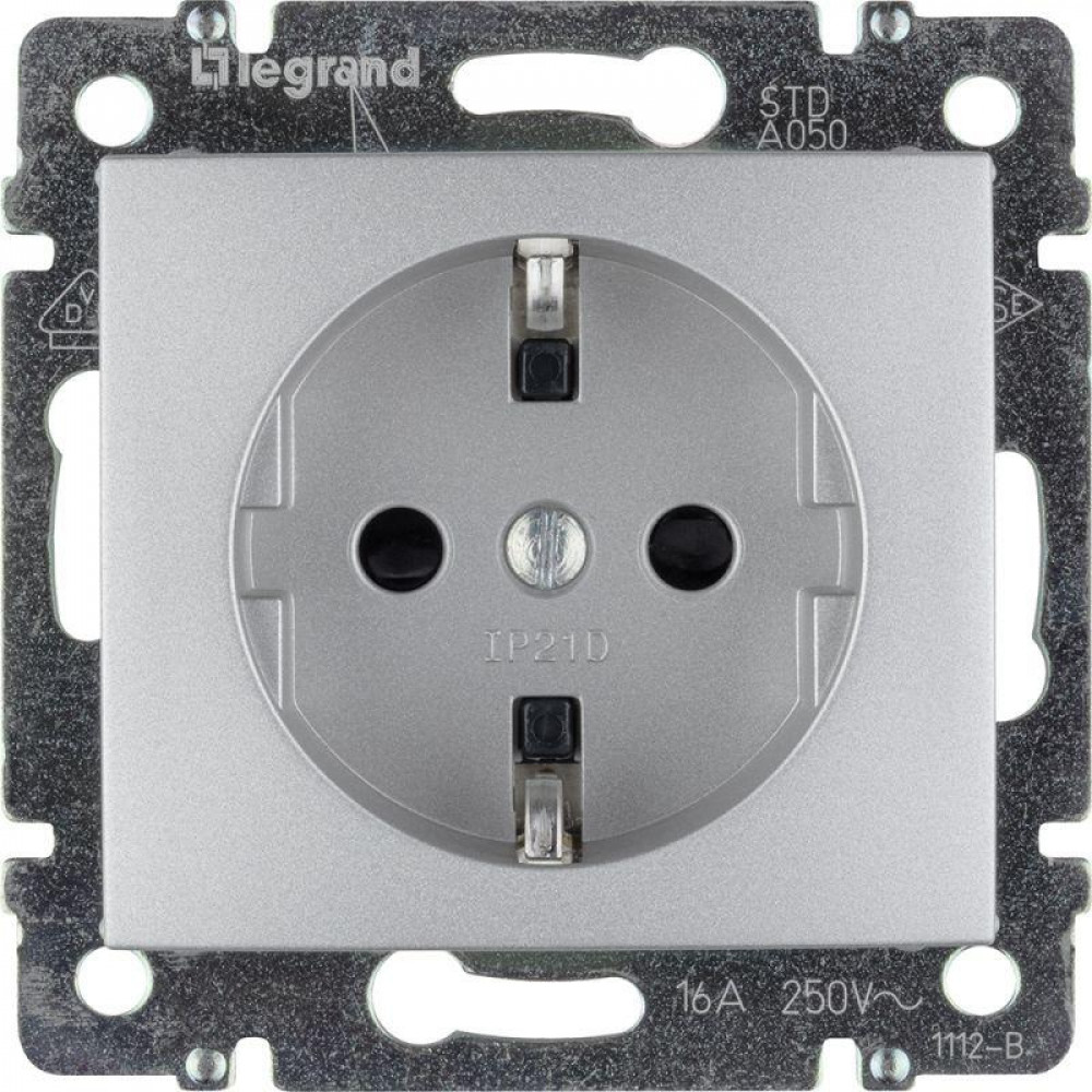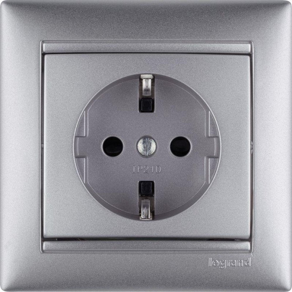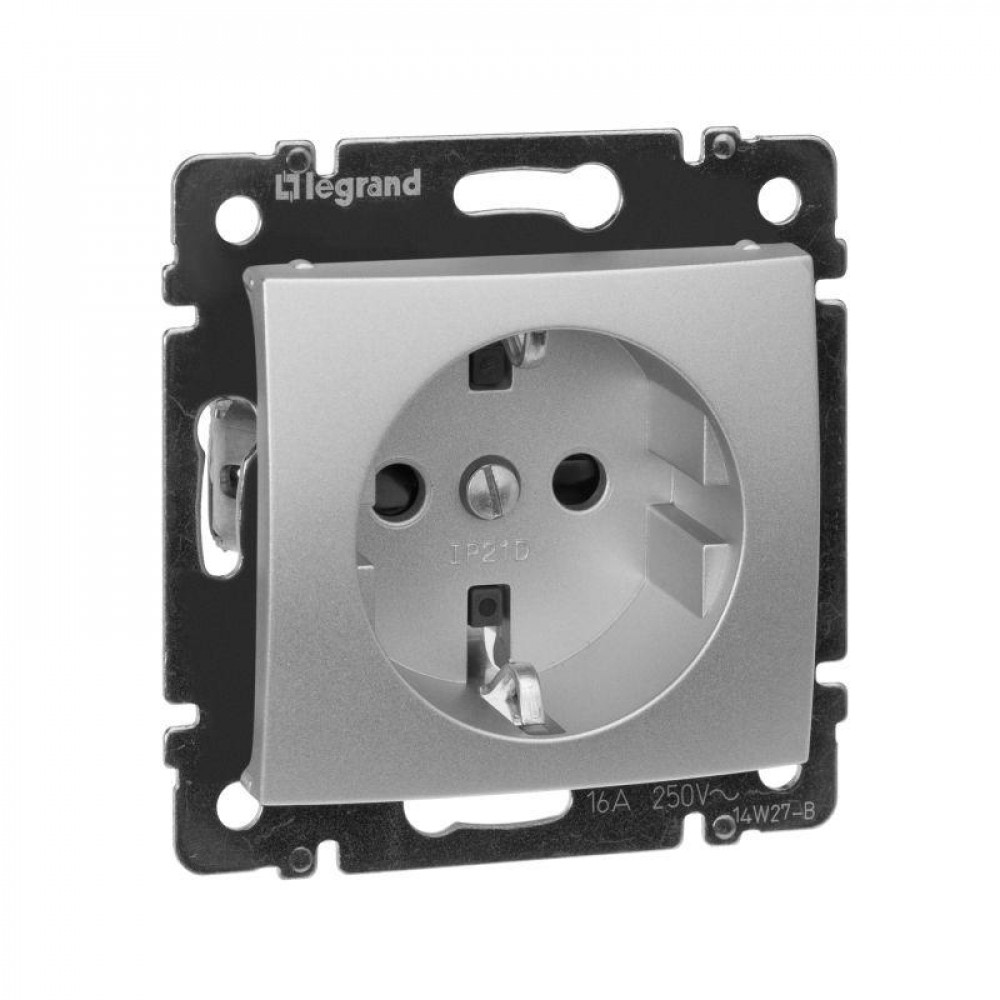 Розетка 1-м СП Valena 16А IP21 230/250В 2P+E с заземл. защ. шторки на винтах механизм алюм. 770121, Розетка скрытого монтажа