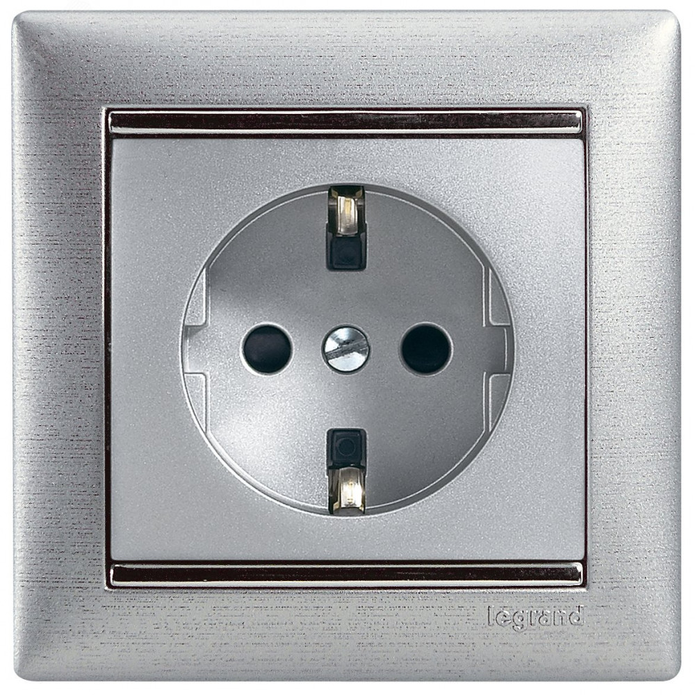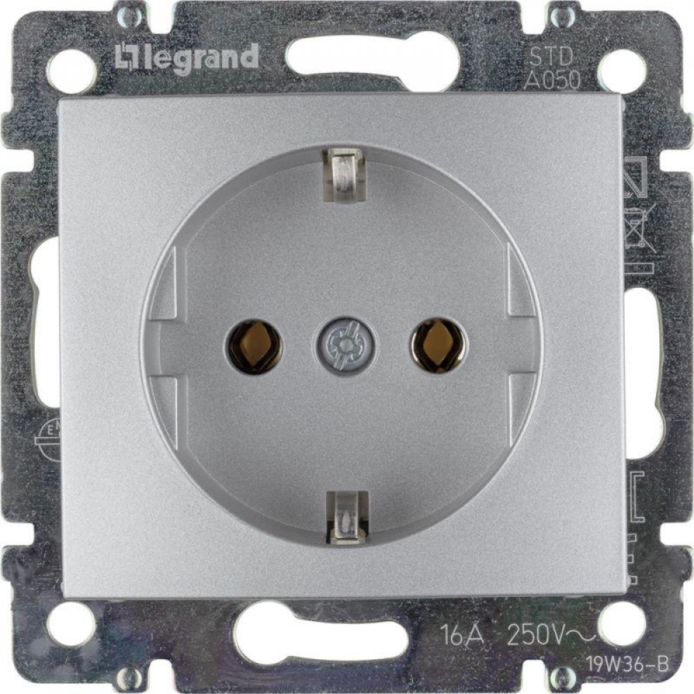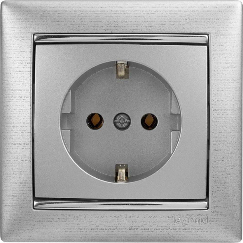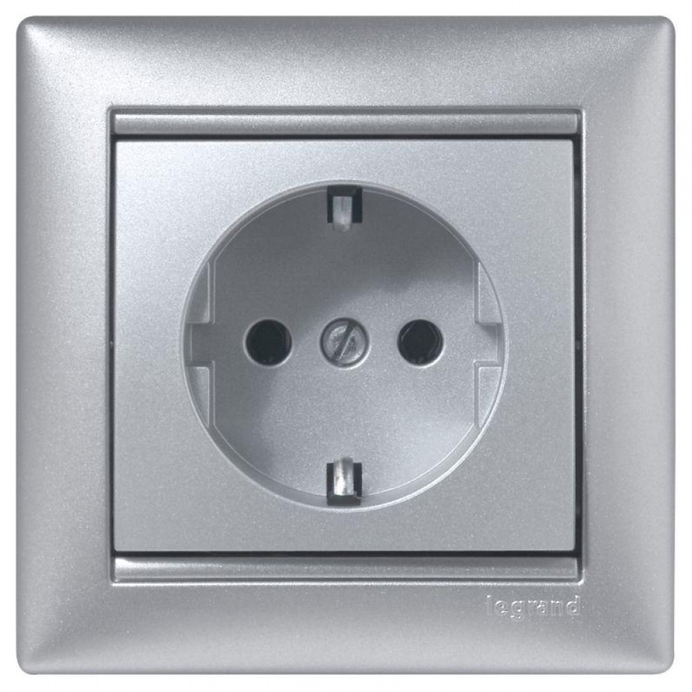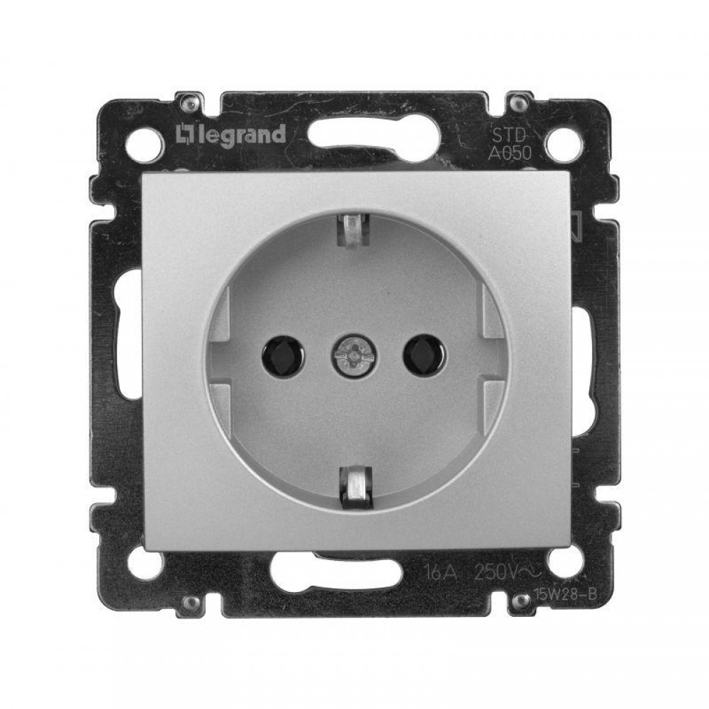 Розетка 1-м СП Valena 16А IP20 с заземл. на винтах механизм алюм. Leg 770120, Розетка скрытого монтажа