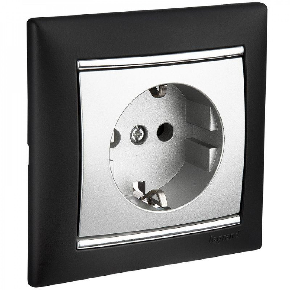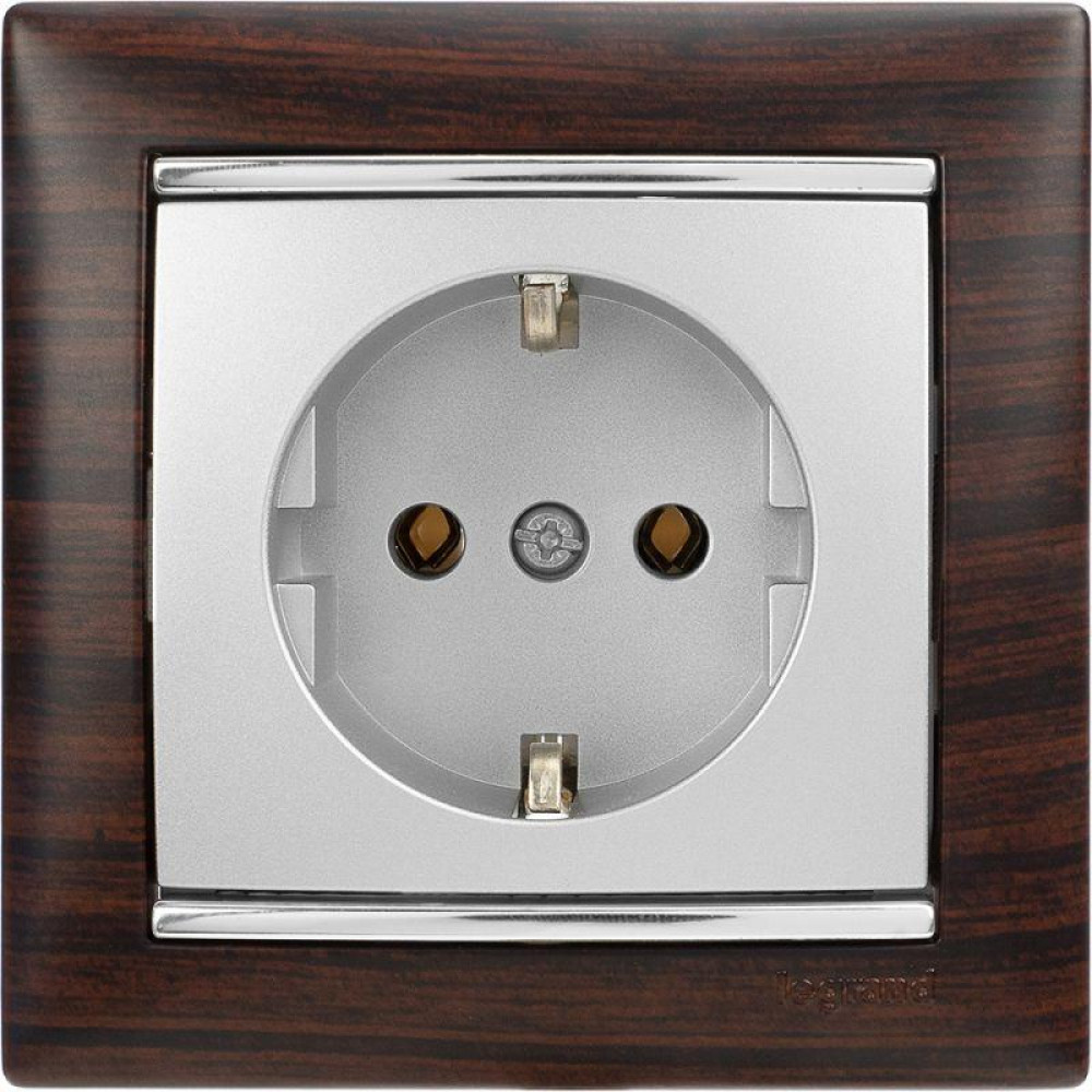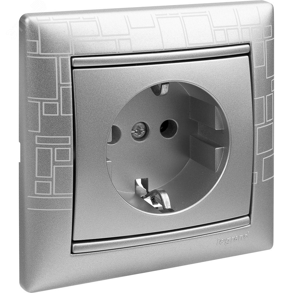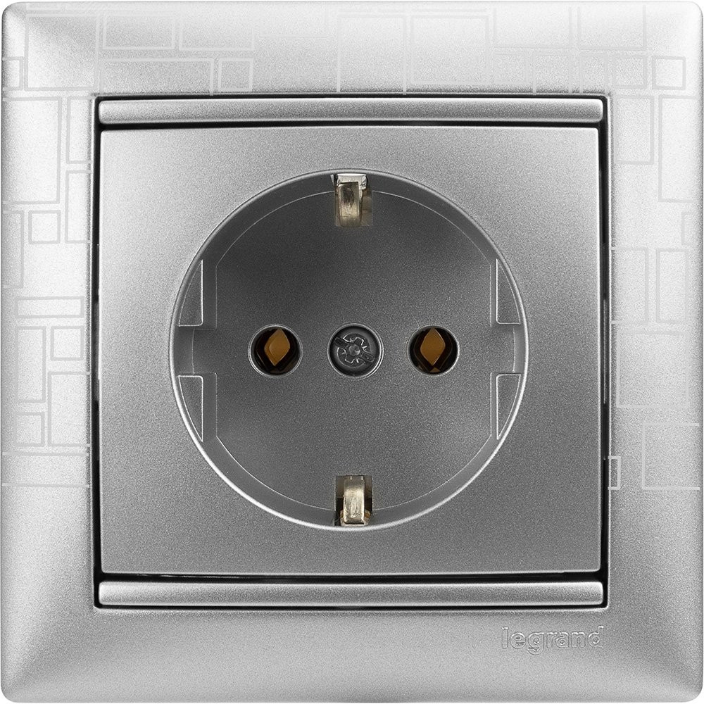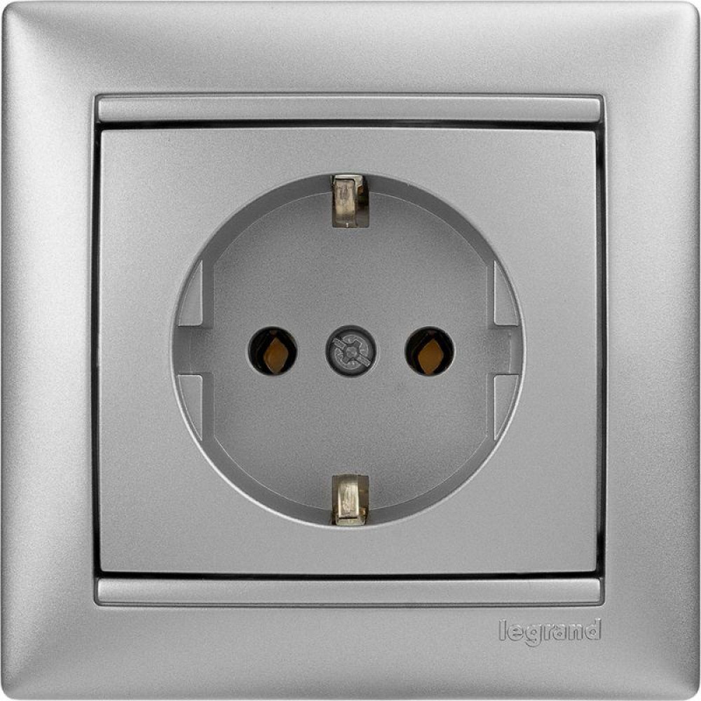 Розетка 1-м СП Valena 16А IP20 с заземл. на винтах механизм алюм. Leg 770120, Розетка скрытого монтажа