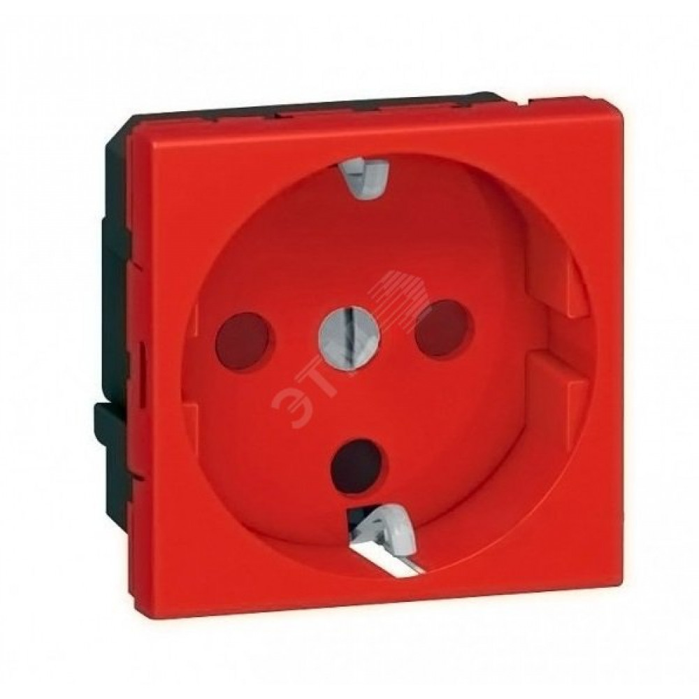 Розетка 1-м СП 2мод. Mosaic 16А IP20 правый с заземл. немецк. стандарт винтов. клеммы с механич. блокировк. механизм красн. Leg 077214, Изделие электроустановочное