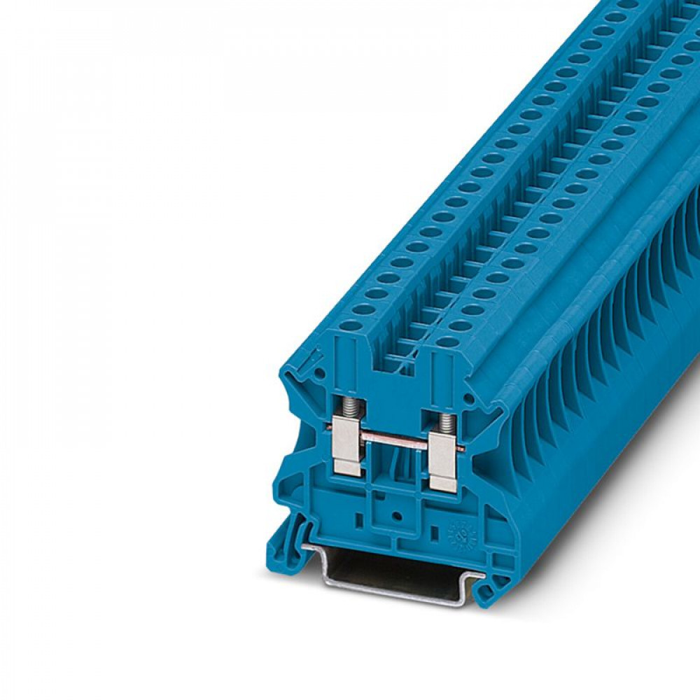 Проходная клемма, тип фиксации провода: винтовой, номинальное сечение: 4 мм кв., 32A, 800V, ширина: 6,2 мм, цвет: синий, тип монтажа: DIN35, винтовая перемычка, зажимная клетка: латунь
