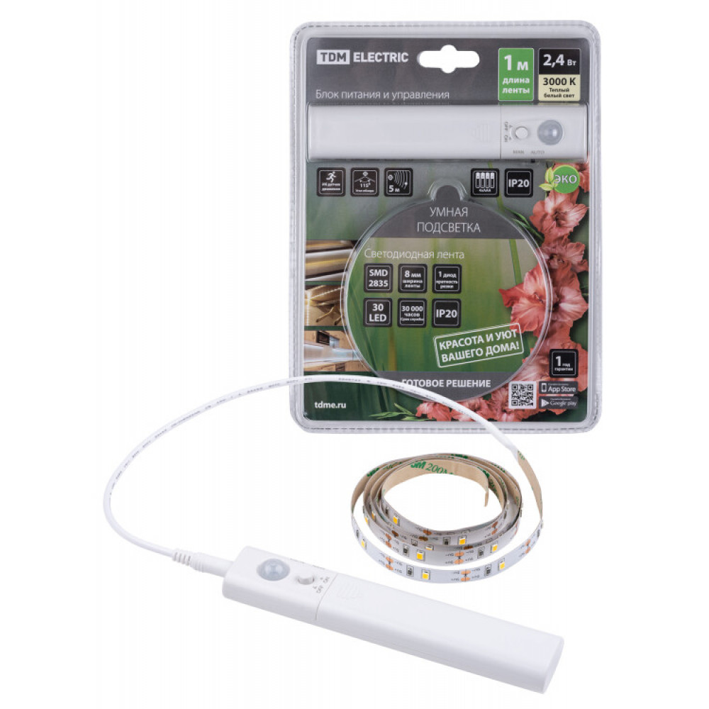 Описание Умная подсветка SMD2835-30LED/m-IP20-5В-2,4Вт-3000 К(1 м), датчик движ., 4хААА SQ0331-0502