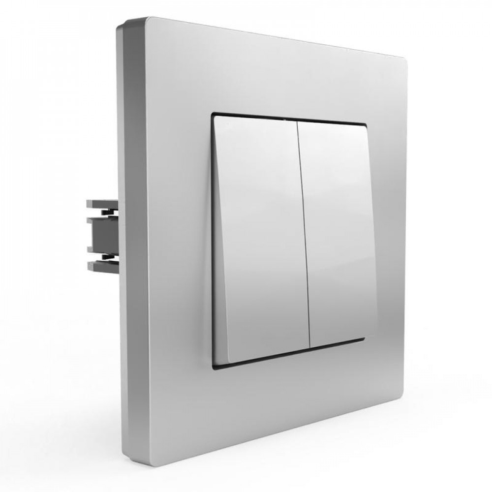 Выключатель 2-кл. СП Pixel 10А IP20 в сборе алюм. TKE-PX-V2F-C03, Выключатель и переключатель скрытого монтажа