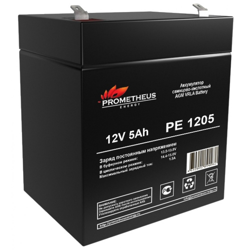 PE1205, Аккумулятор свинцово-кислотный 12V 5Ah, размер 90х70х101мм, плоская клемма 6.3мм, срок службы 6 лет