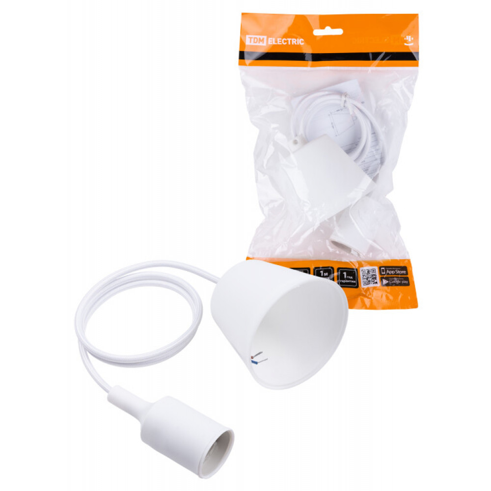 Описание Патрон пластиковый Е27 с подвесом 1 м, белый SQ0335-0061