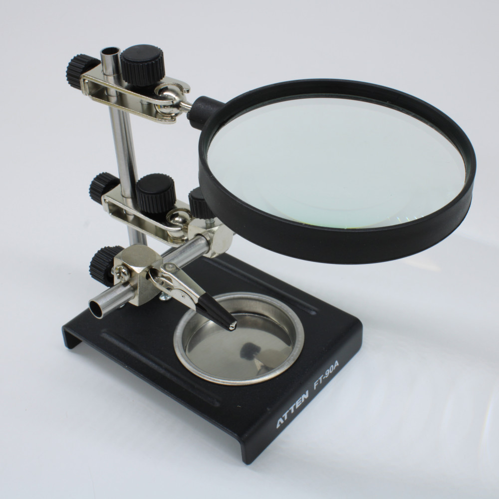 FT-90A, Держатель "третья рука" с увеличительным стеклом D90мм, 3-х кр. увеличение