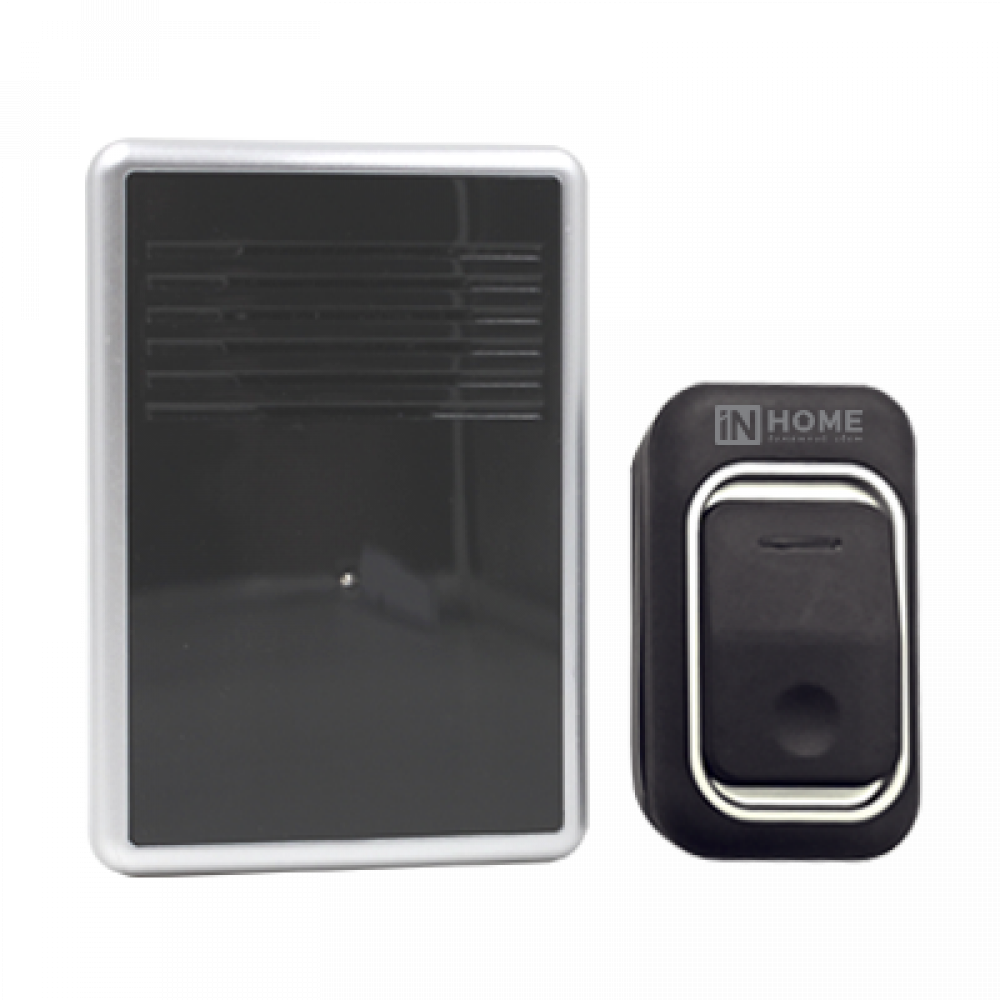 Звонок беспроводной ЗБ-10 38 мелодий с регул. звука подсветкой 150м цифр. кодир. с кнопкой IP44 серебр./черн. 4690612013381, Звонок электроустановочный