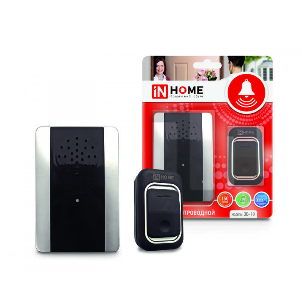 Доставка Звонок беспроводной ЗБ-10 38 мелодий с регул. звука подсветкой 150м цифр. кодир. с кнопкой IP44 серебр./черн. 4690612013381