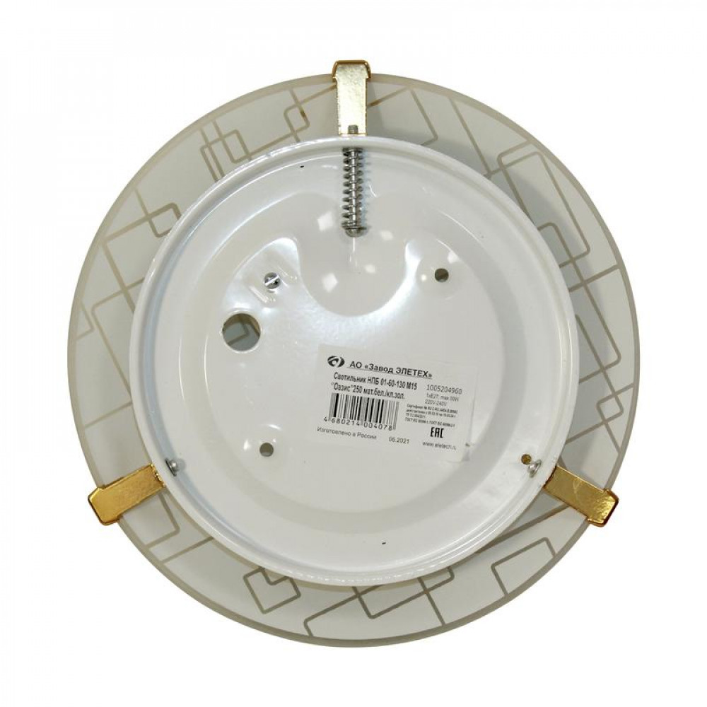 Описание Светильник НПБ 01-60-130 М15 "Оазис" 250 1х60Вт E27 IP20 матов. бел./клипсы зол. (инд. упак.) 1005204960