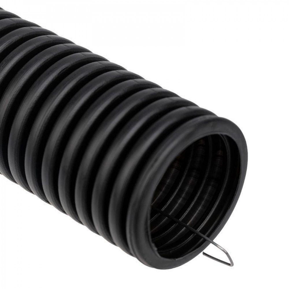 Труба гофрированная ПНД d50мм с протяжкой черн. 28-0050-3, Труба и короб для прокладки кабеля