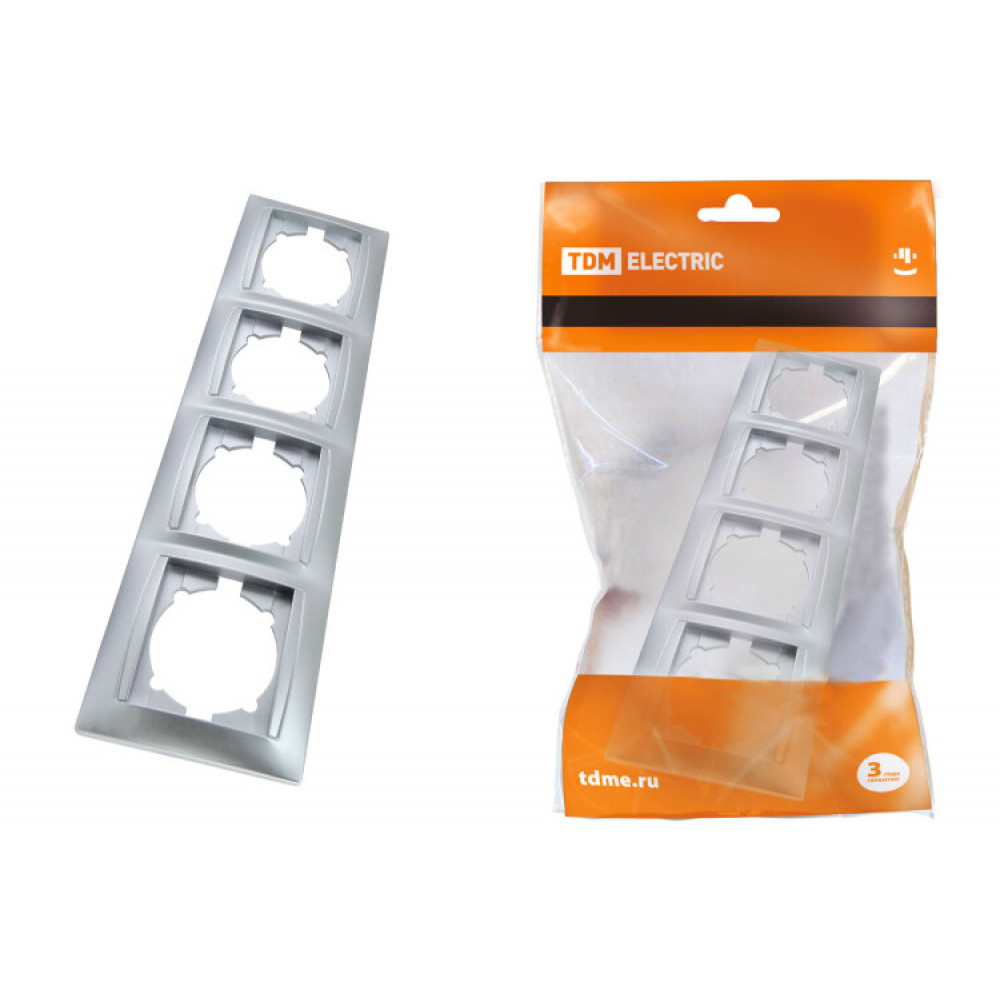 Рамка 4-х постовая горизонтальная серебр. металлик "Лама" SQ1815-0232, Аксессуар для скрытого монтажа