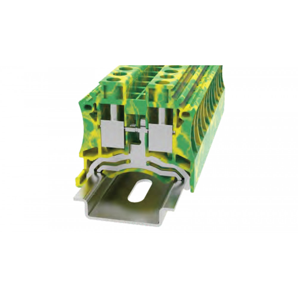 Заземляющая клемма, тип фиксации провода: винтовой, номинальное сечение: 6 мм кв., ширина: 8 мм, цвет: желто-зеленый, тип монтажа: DIN35, зажимная клетка: сталь
