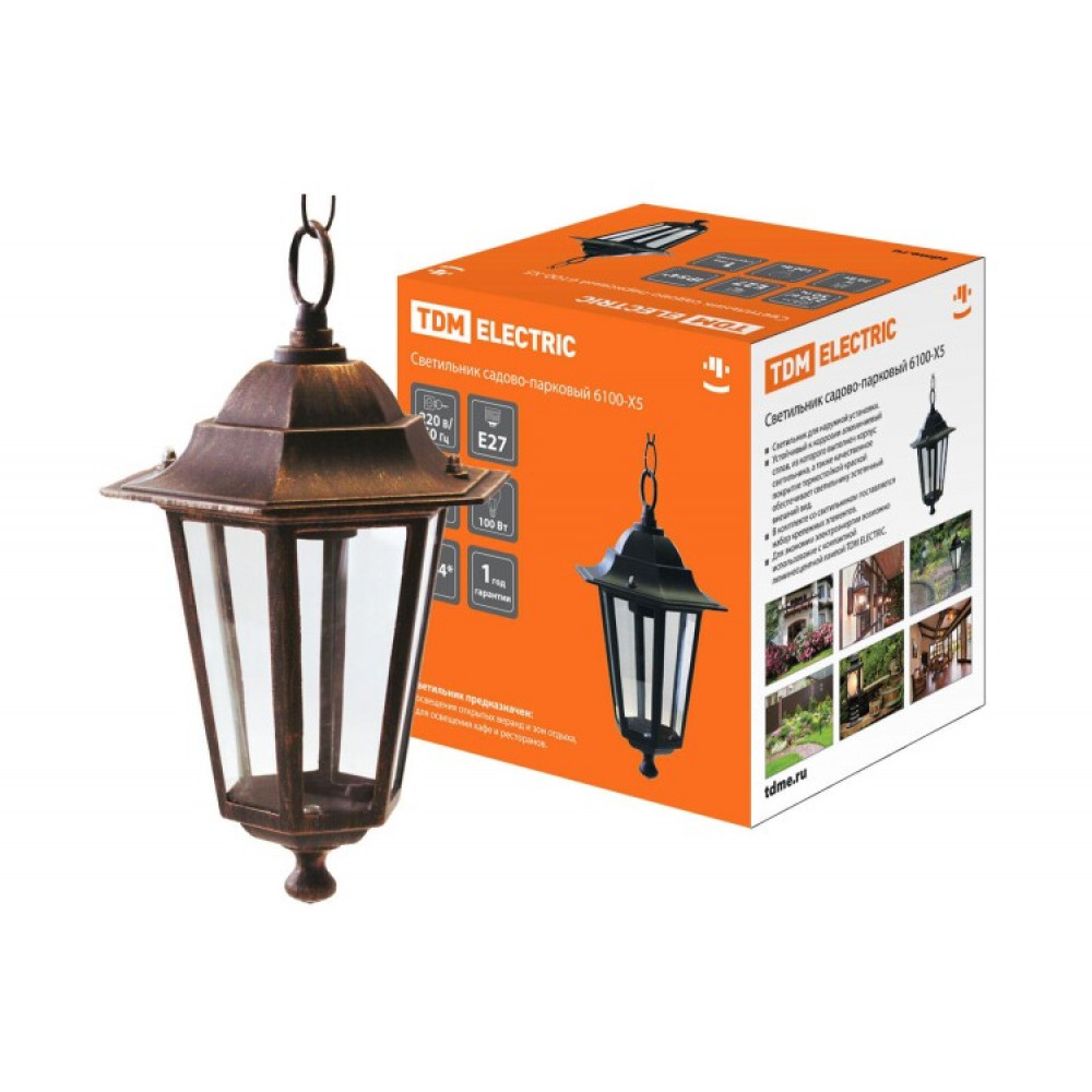 Описание Светильник 6100-15 садово-парковый шестигранник, 100Вт, подвес, бронза SQ0330-0020