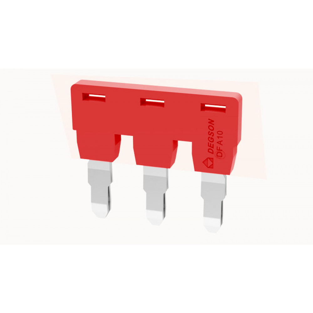 Соединительная перемычка, 3 полюса, изолированная, вилочная, для клемм: DC10, цвет: красный