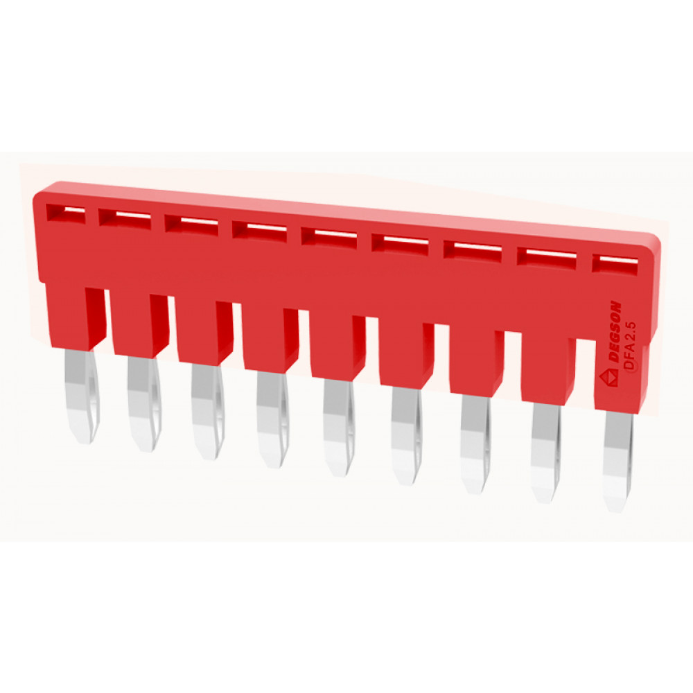 Соединительная перемычка DFA2.5-09P-16-00Z(H), Соединительная перемычка, 9 полюсов, изолированная, вилочная, для клемм: DC2.5, цвет: красный
