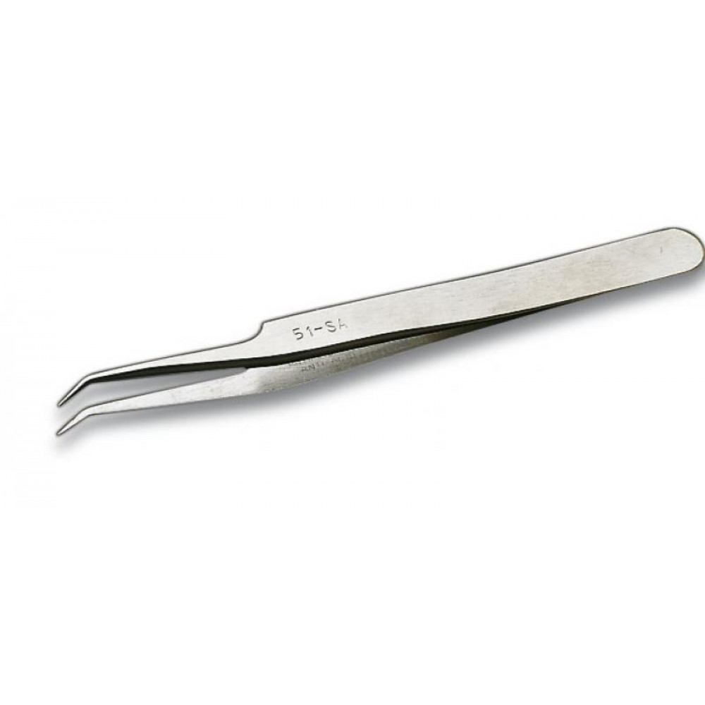 51SAL, Угол 30°, специальная нержавеющая сталь, не магнитится. Утонченный точный изогнутый пинцет. Очень тонкие концы, длина 115 мм, 12 г. Экономичный вариант модели 51SA