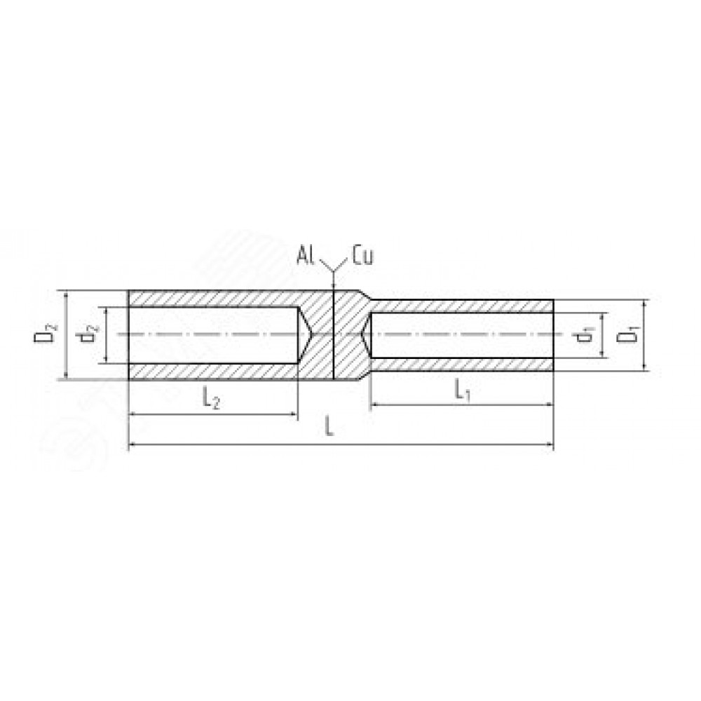 Гильза кабельная алюмомедная ГАМ 95/70, Гильза кабельная алюмомедная под опрессовку по ГОСТ, сечение для алюминия 95 мм2, для меди 70 мм2