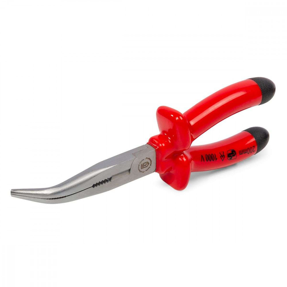 Длинногубцы изогнутые диэлектрические 200 мм серия Эксперт, для работ под напряжением до 1000 В, захват и удержание плоских и круглых деталей