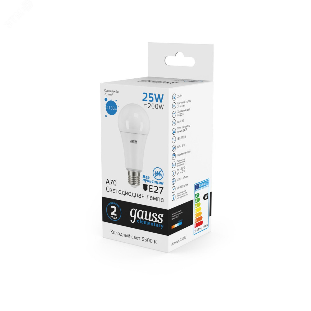 Описание Лампа светодиодная Elementary 25Вт A70 грушевидная 6500К холод. бел. E27 2150лм 73235