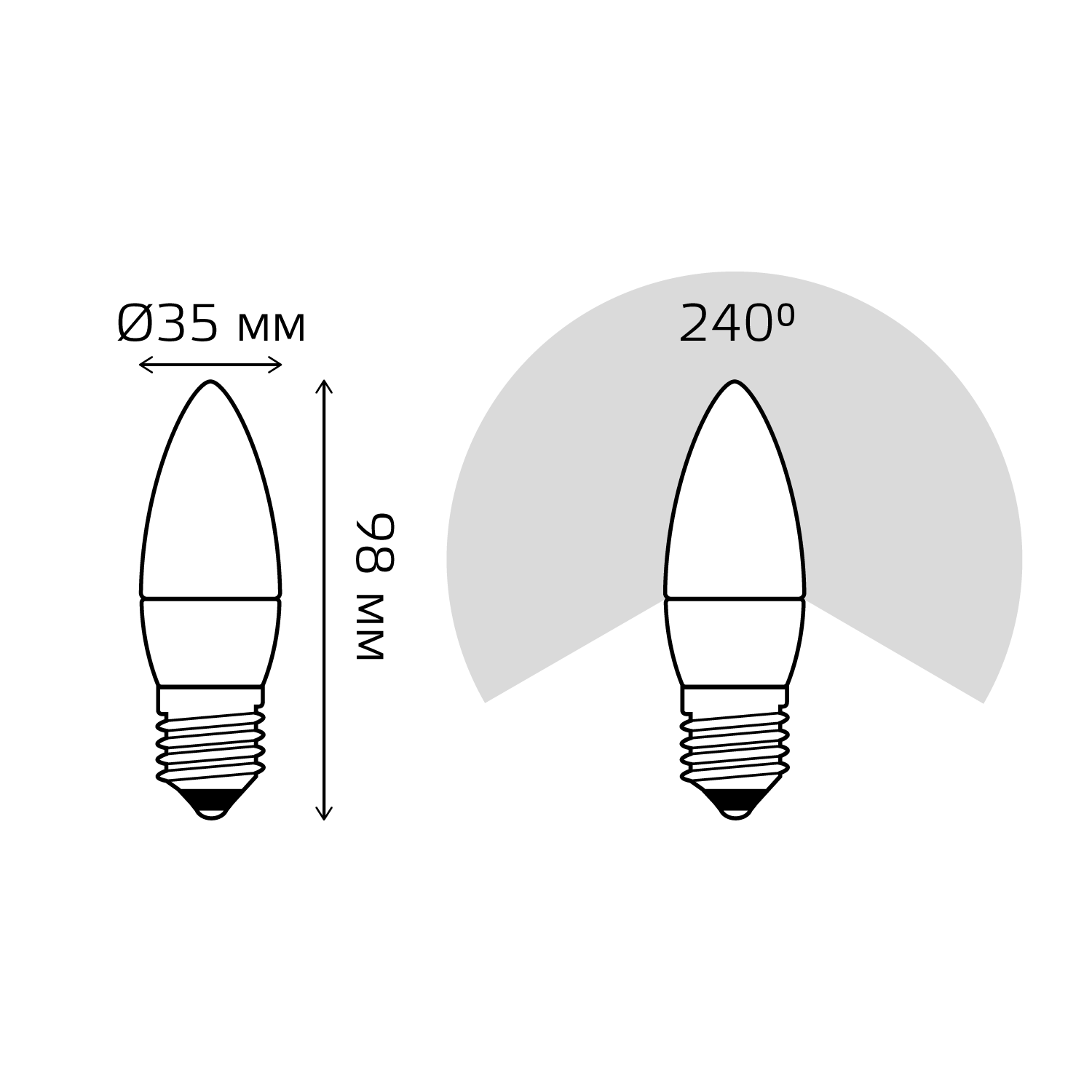 Лампа светодиодная LED Elementary Candle 6Вт E27 2700К Gauss 33216 – лампа с колбой вида "свеча", желтого света, длиной 112 мм, диаметром 37 мм, с цоколем Е14, мощностью 6 Вт. Цветовая температура 2700 К.