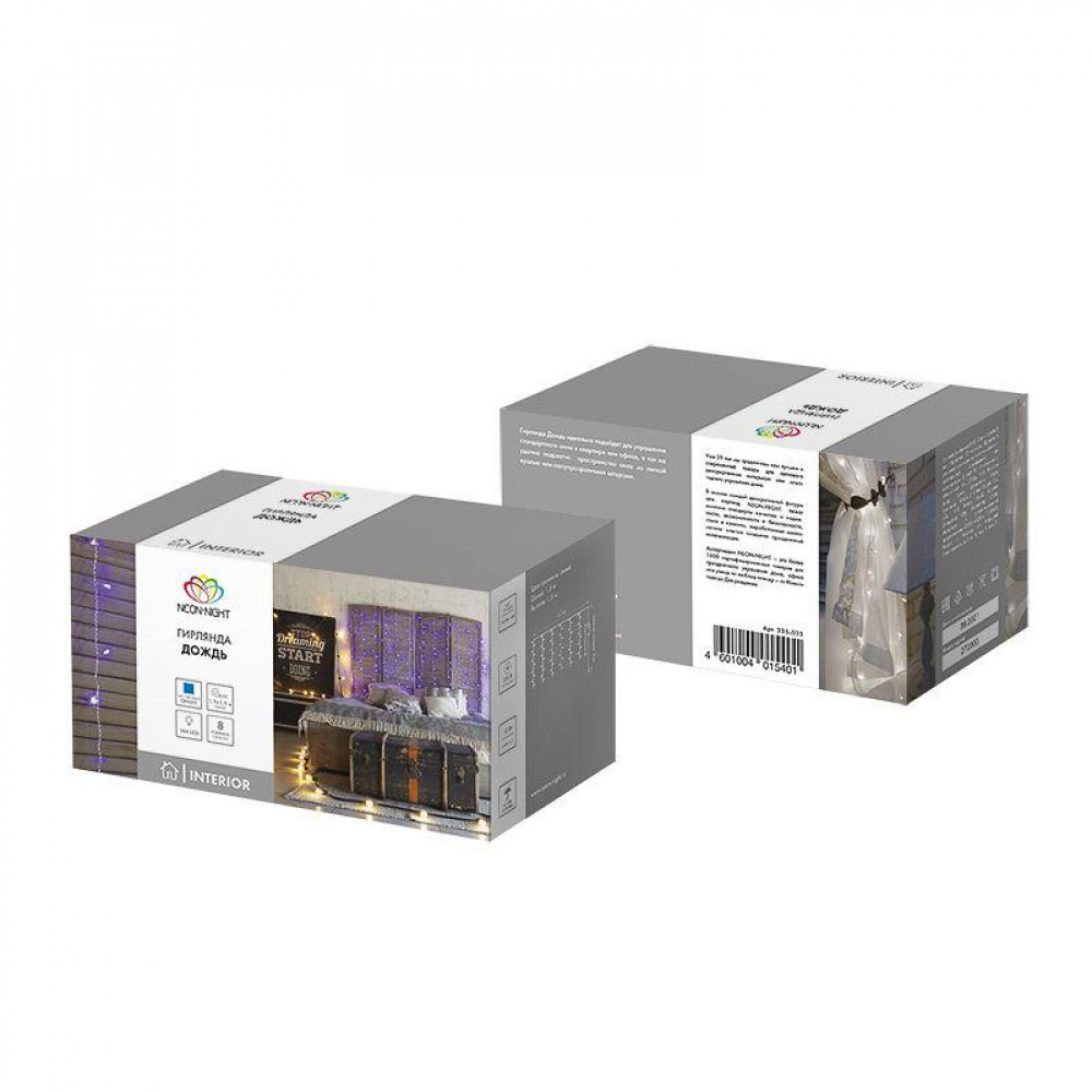 Описание Гирлянда светодиодная "Светодиодный Дождь" 1.5х1.5м 144LED син. 12Вт 230В IP20 с контроллером провод прозр. 235-033