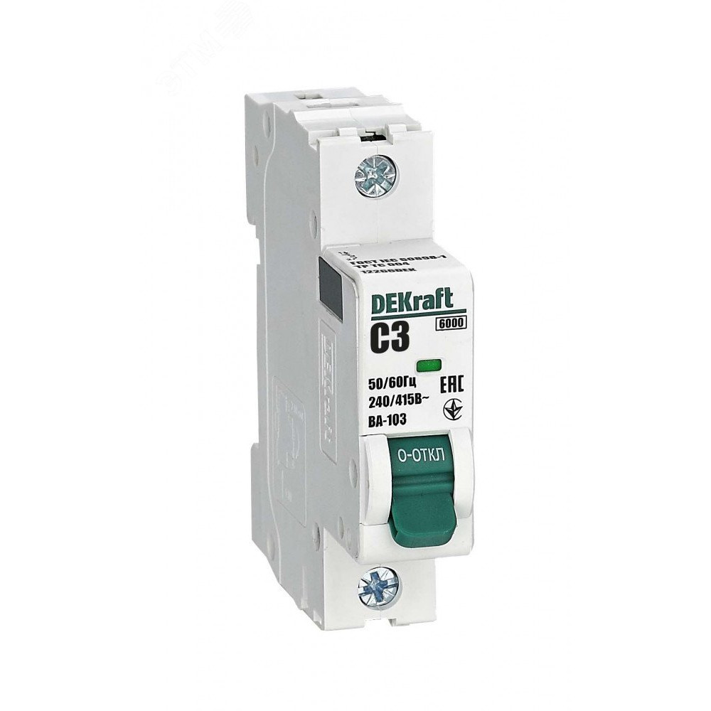 Выключатель автоматический модульный 1п C 3А 6кА ВА-103 DEKraft 12266DEK, Выключатель автоматический модульный