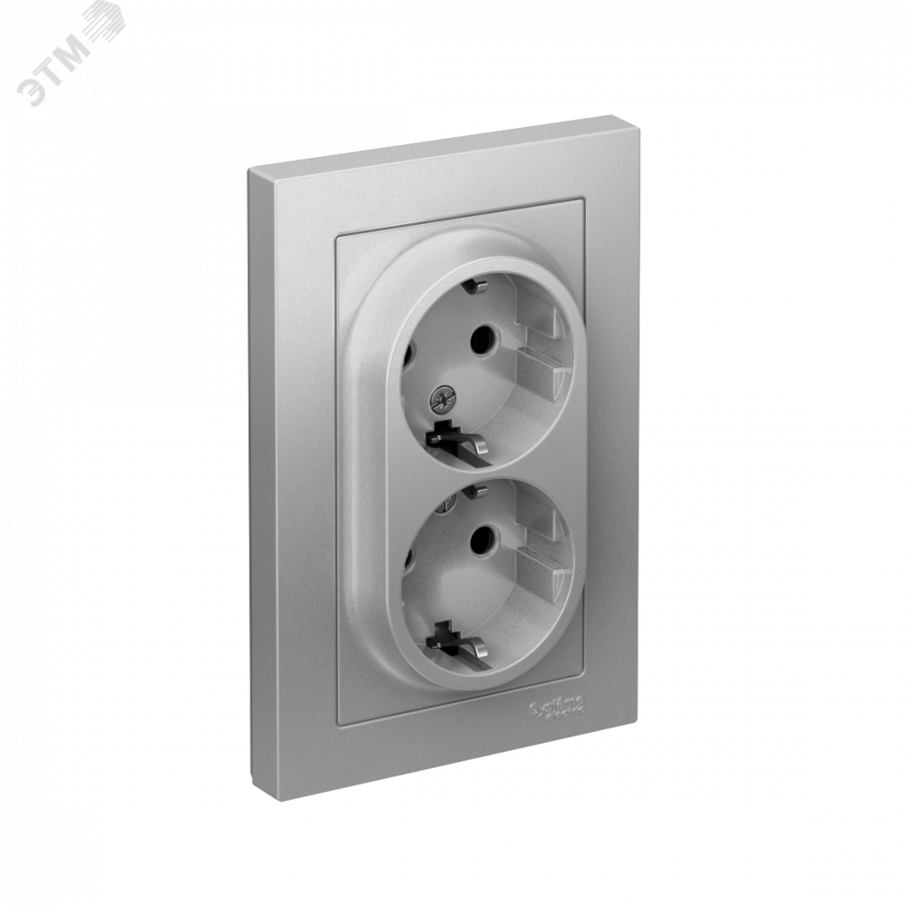 Розетка 2-м СП AtlasDesign 16А IP20 с заземл. защ. шторки в сборе алюм. SE ATN000326, Розетка скрытого монтажа