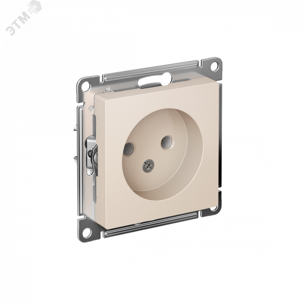 Механизм Systeme Electric (ранее Schneider Electric) серии AtlasDesign в бежевом цвете розетки одинарной без заземления и без шторок подходит для сетей 250 В, на ток 16 А.