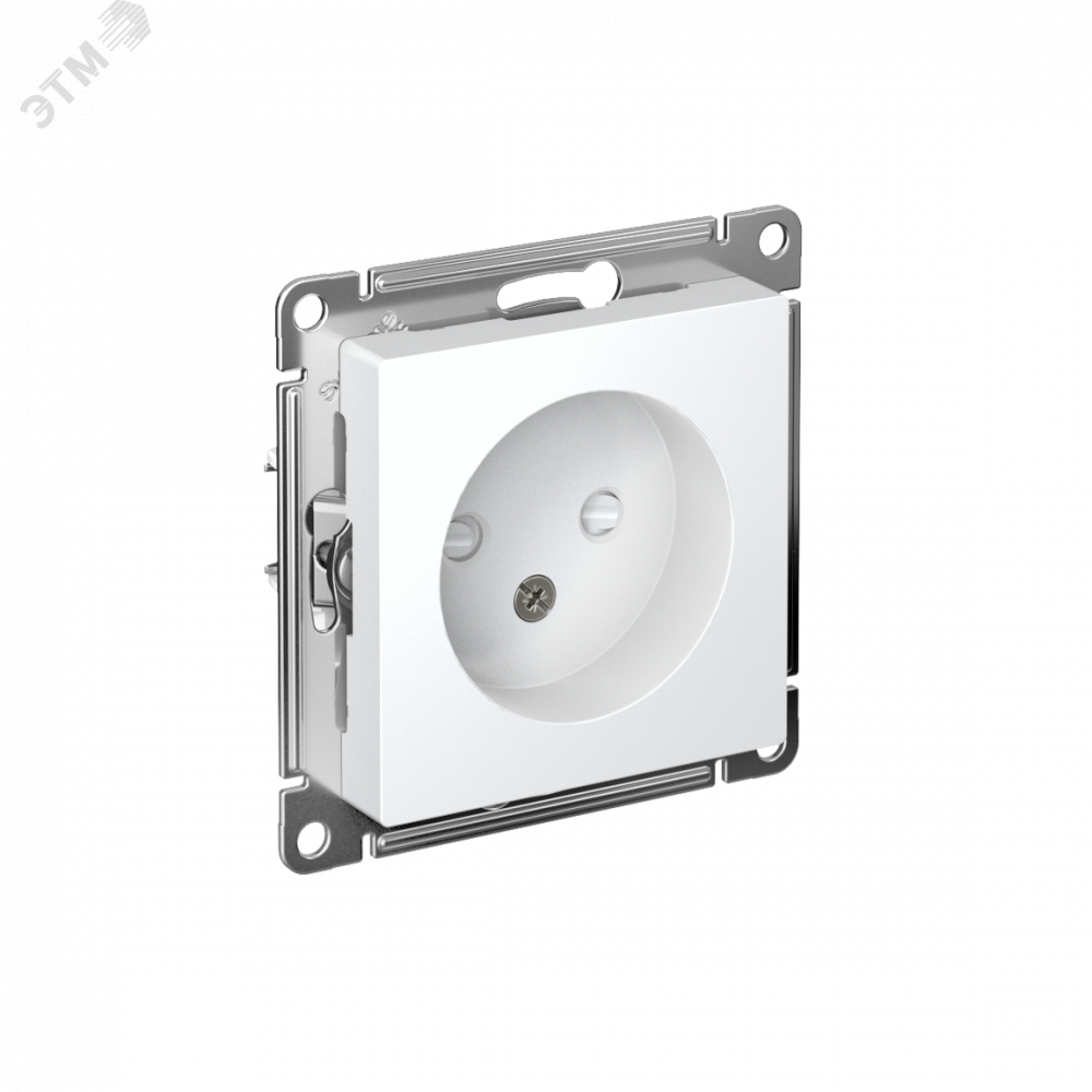Механизм AtlasDesign (цвет белый) розетки одинарной без заземления со шторками подходит для сетей 250 В, на ток 16 А.