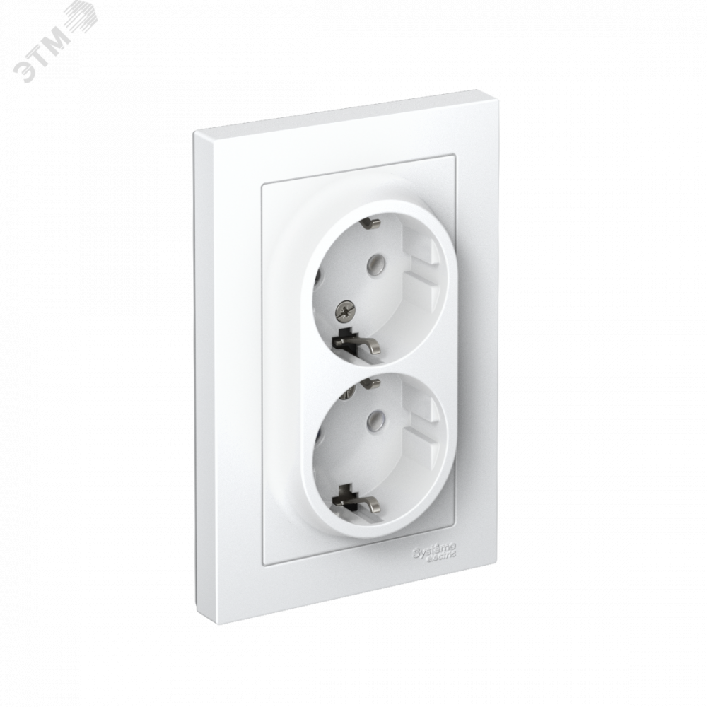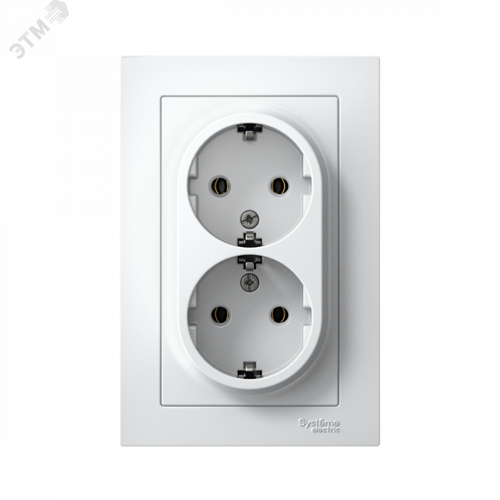Розетка двойная AtlasDesign (в сборе, цвет белый) с заземлением, без шторок подходит для сетей 250 В, на ток 16 А.