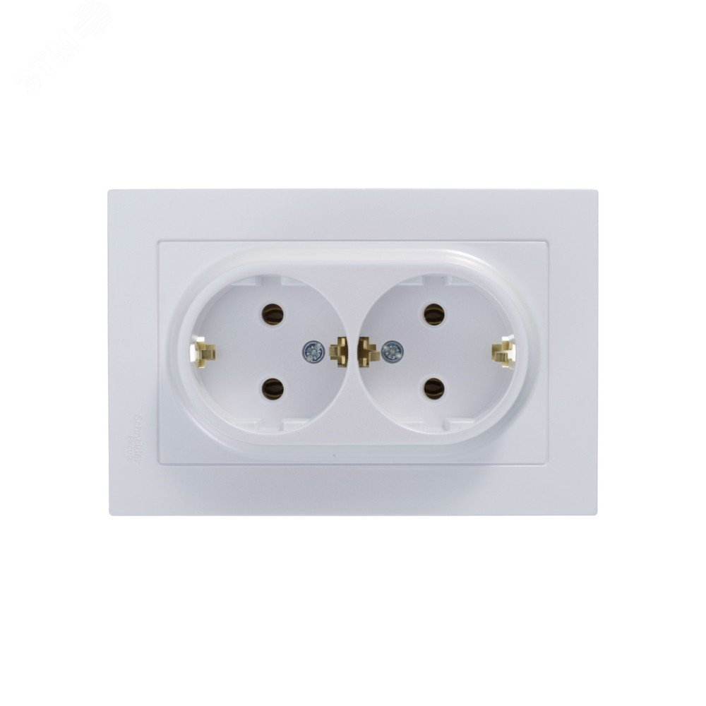 Розетка двойная AtlasDesign (в сборе, цвет жемчуг) с заземлением, без шторок подходит для сетей 250 В, на ток 16 А.