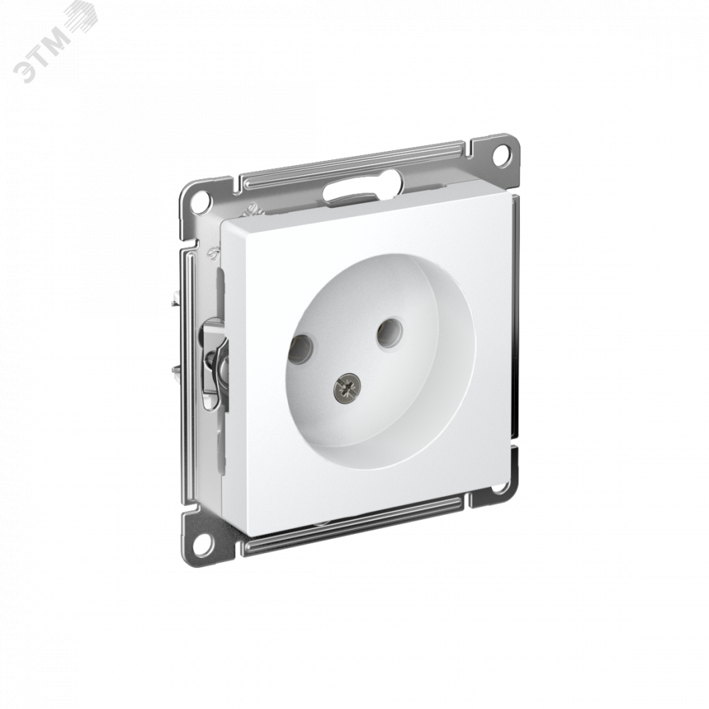Механизм AtlasDesign (цвет белый) розетки одинарной без заземления и без шторок подходит для сетей 250 В, на ток 16 А.