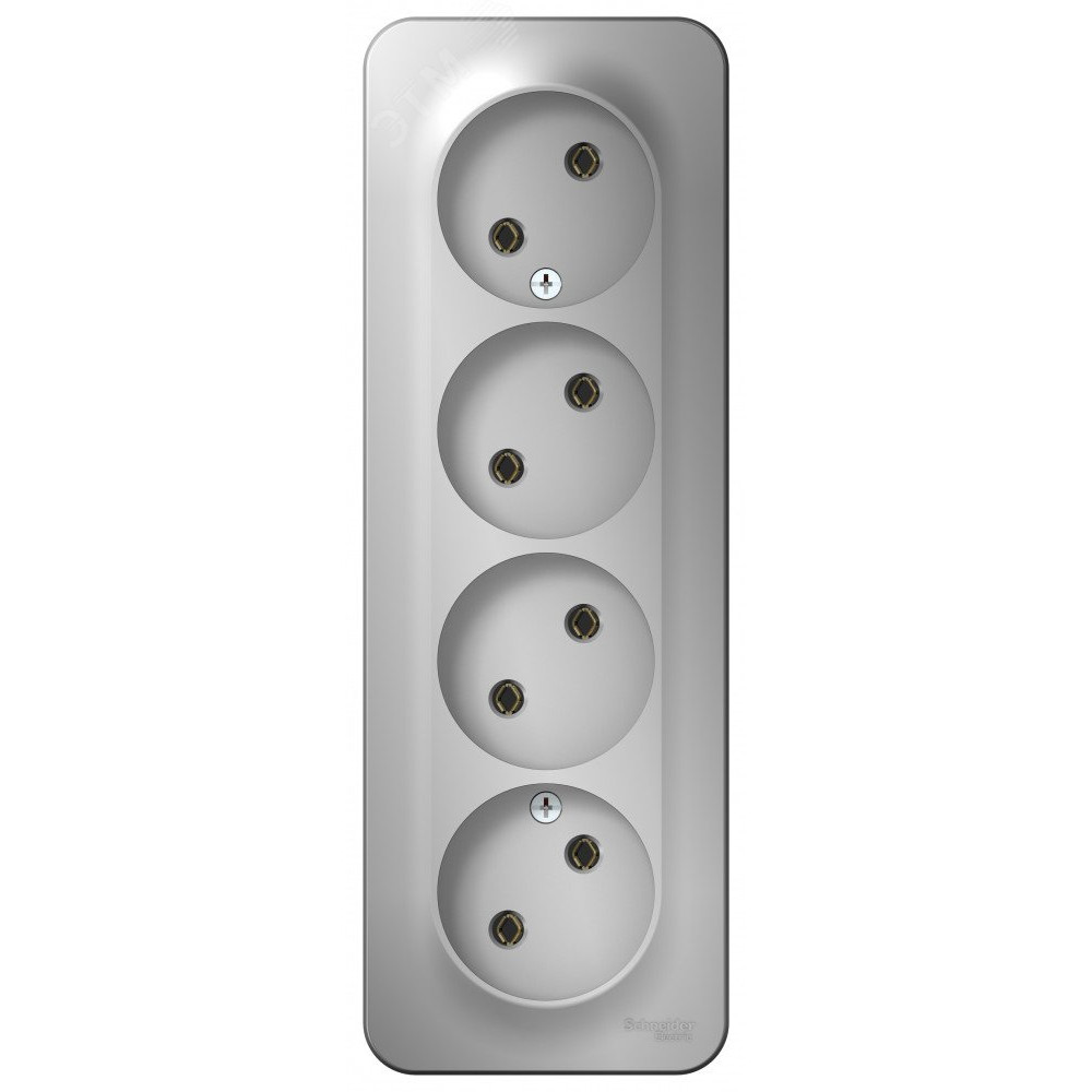 Розетка 4-м ОП Blanca 16А IP20 250В без заземл. без защ. шторок с изолир. пластиной алюм. SE BLNRA000413, Розетка открытого монтажа