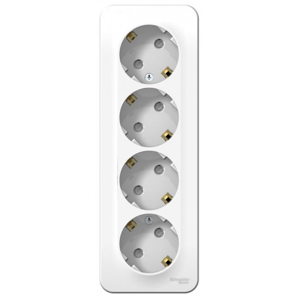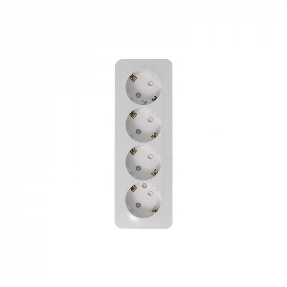Розетка 4-м ОП Blanca 16А IP20 250В с заземл. защ. шторки с изолир. пластиной бел. SE BLNRA011411, Розетка открытого монтажа