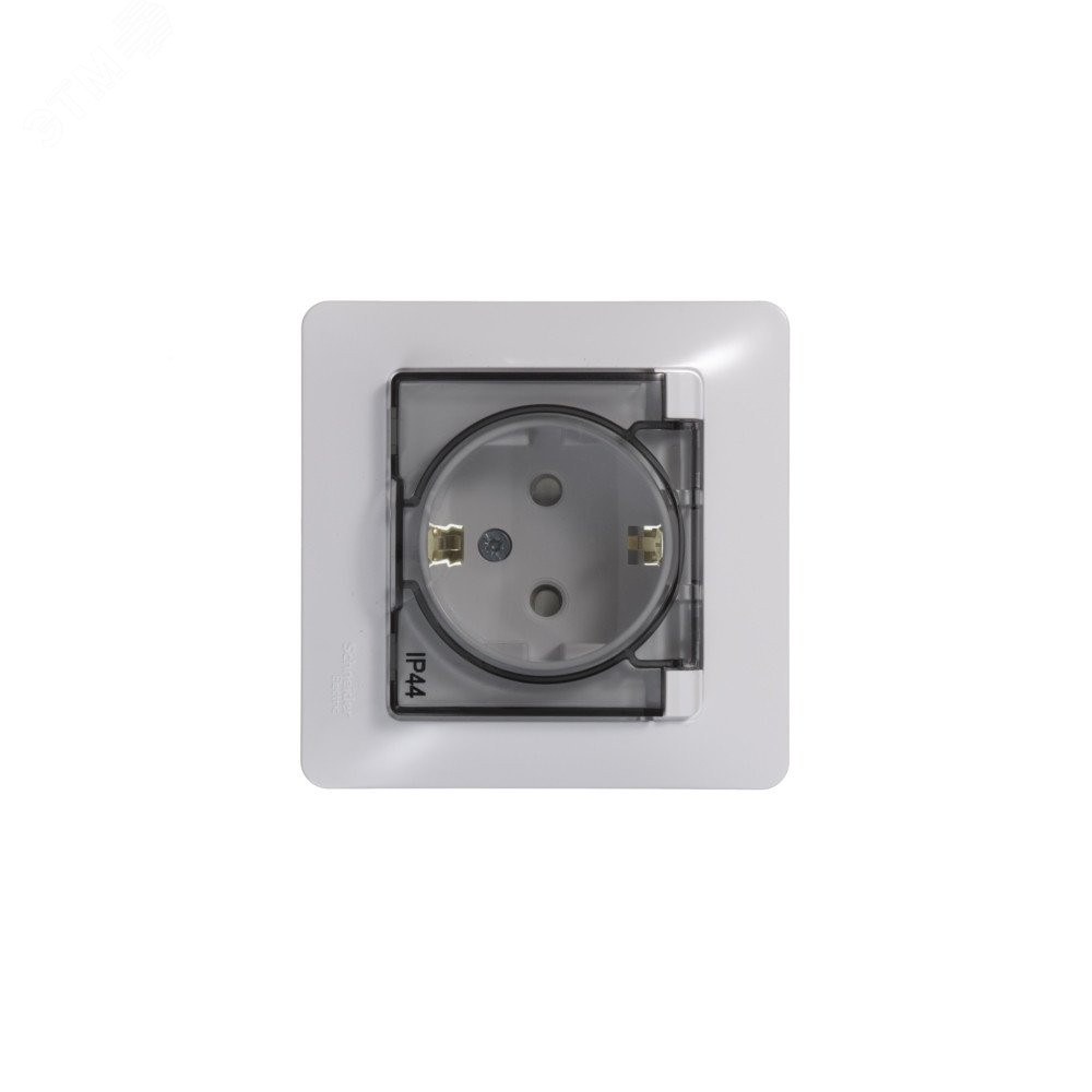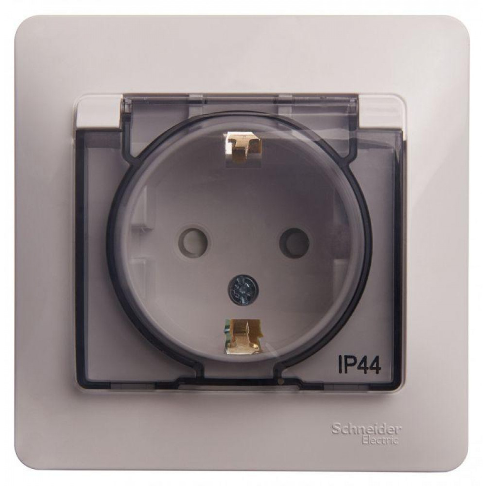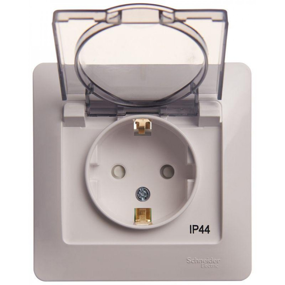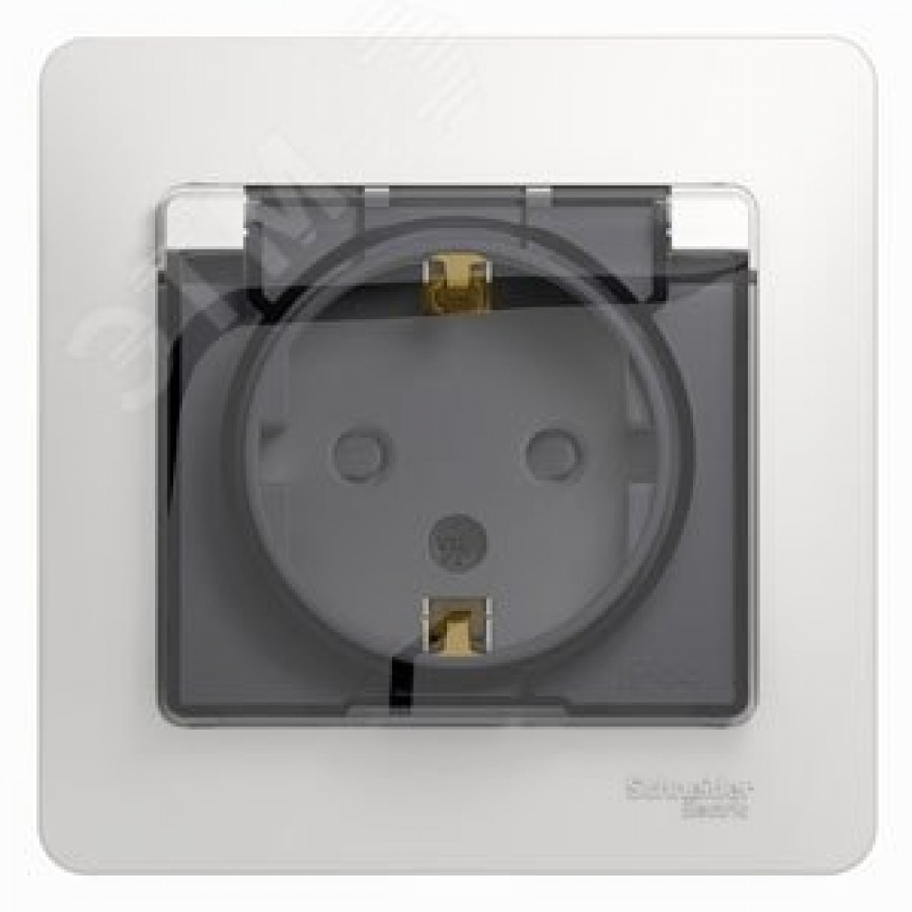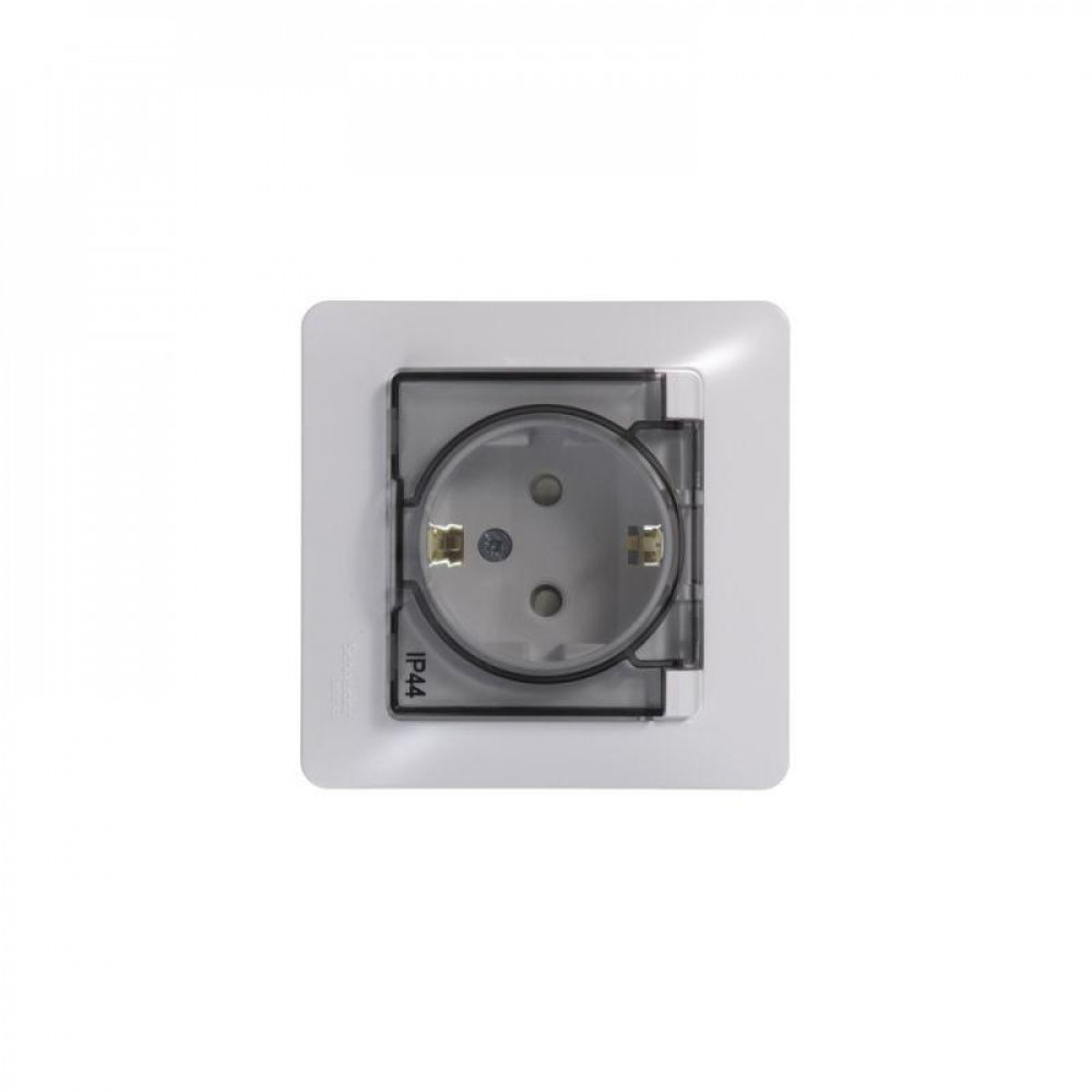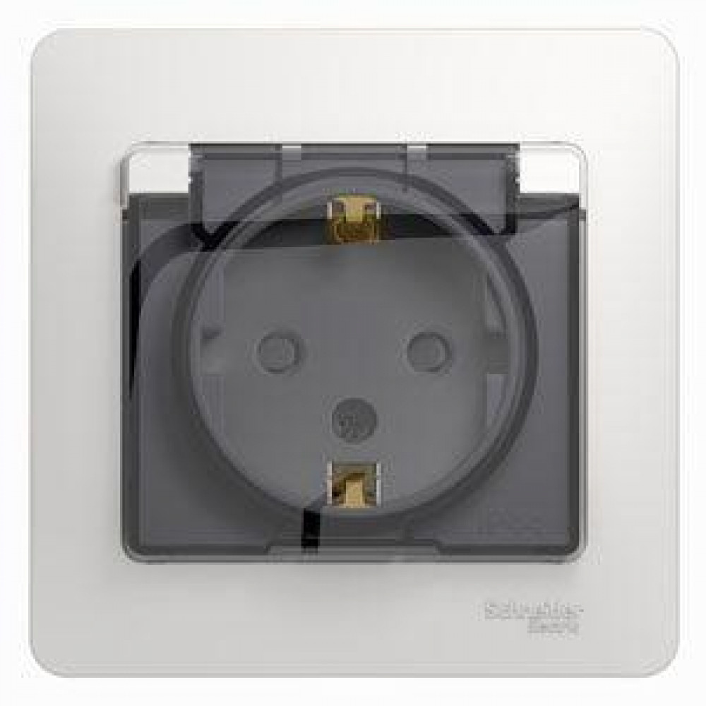 Розетка 1-м СП Glossa 16А IP44 с заземл. защ. шторки с крышкой в сборе бел. SE GSL000148, Розетка скрытого монтажа
