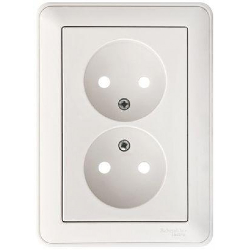 Розетка 2-м СП W59 16А IP20 без заземл. защ. шторки бел. SE RS16-254-18, Розетка скрытого монтажа