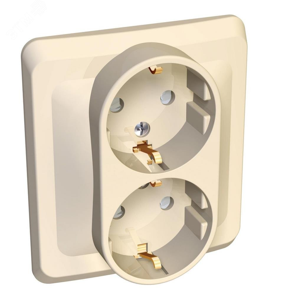 Описание Розетка 2-м СП Этюд 16А IP20 250В с заземл. защ. шторки крем. SE PC16-008K
