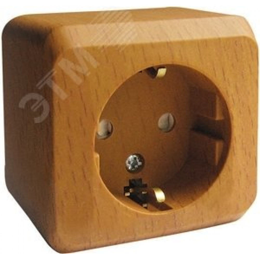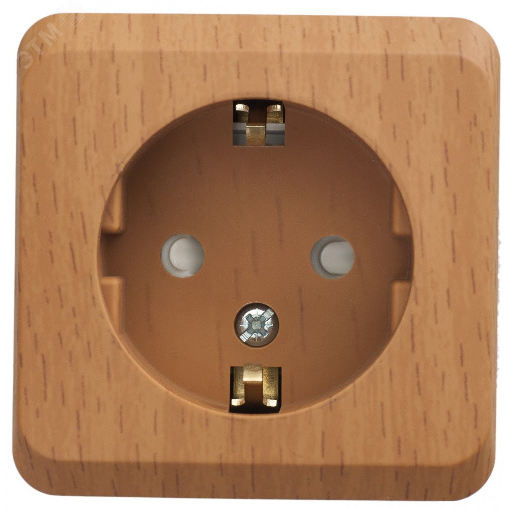 Розетка ЭТЮД (бук, открытой установки) одноместная с заземлением и шторками предназначена для применения в сетях до 250В, на ток до 16А. Шторки открываются при одновременном давлении в оба отверстия и препятствуют проникновению посторонних предметов. Они обеспечивают дополнительную безопасность в доме, где находятся дети. Изделия цвета Бук обладают уникальным рисунком, напоминающим древесный сруб. Сделано в России.