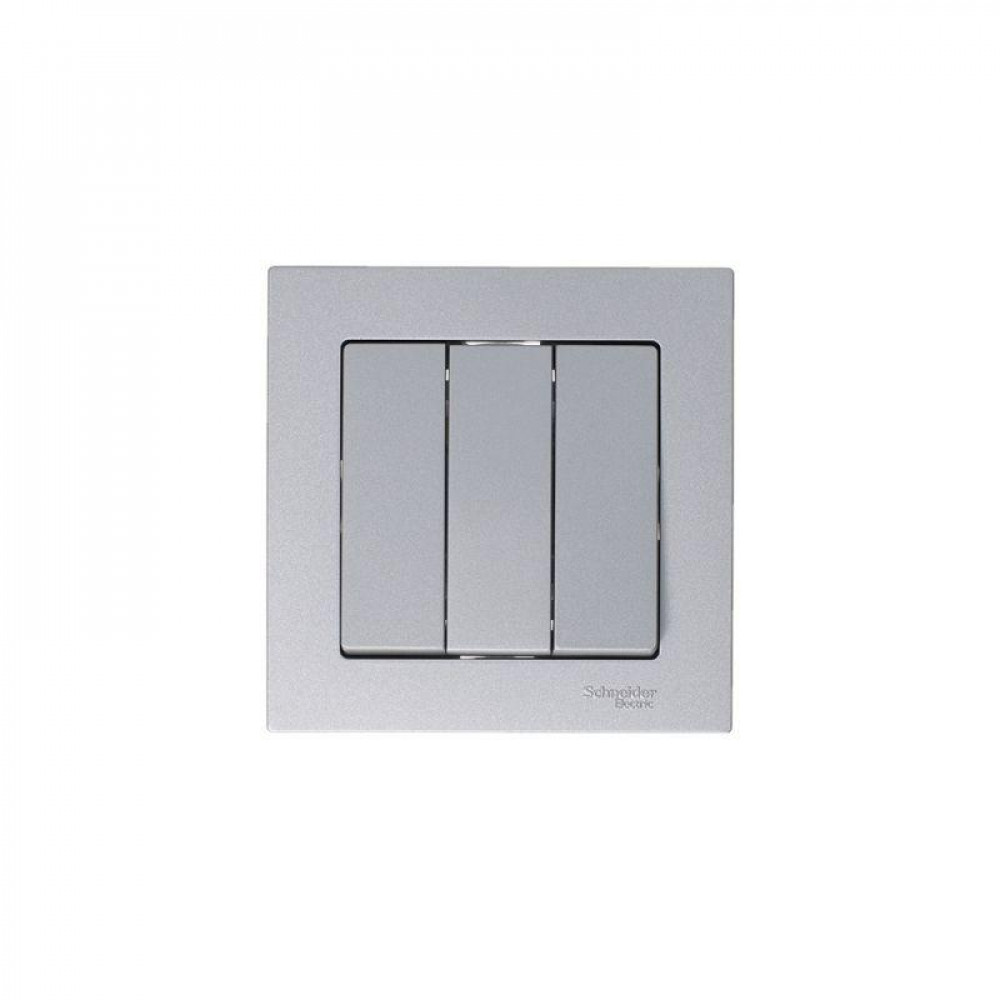 Механизм AtlasDesign (цвет алюминий) выключателя 3-клавишного подходит для сетей 250 В, на ток 10 А.