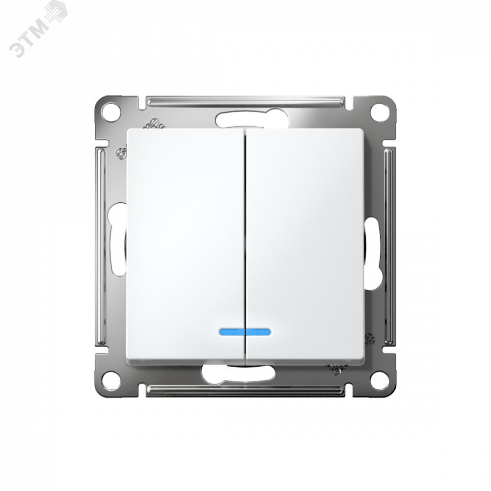 Механизм AtlasDesign (цвет белый) выключателя 2-клавишного c подсветкой подходит для сетей 250 В, на ток 10 А.
