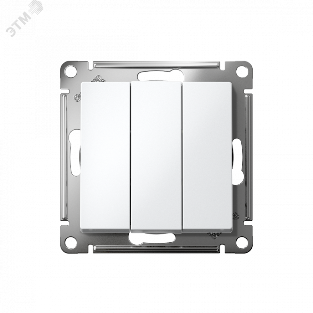 Механизм AtlasDesign (цвет белый) выключателя 3-клавишного подходит для сетей 250 В, на ток 10 А.