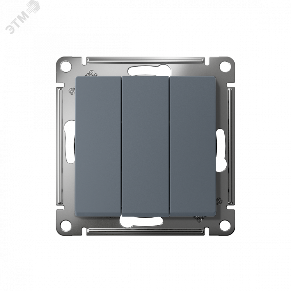 Механизм AtlasDesign (цвет грифель) выключателя 3-клавишного подходит для сетей 250 В, на ток 10 А.
