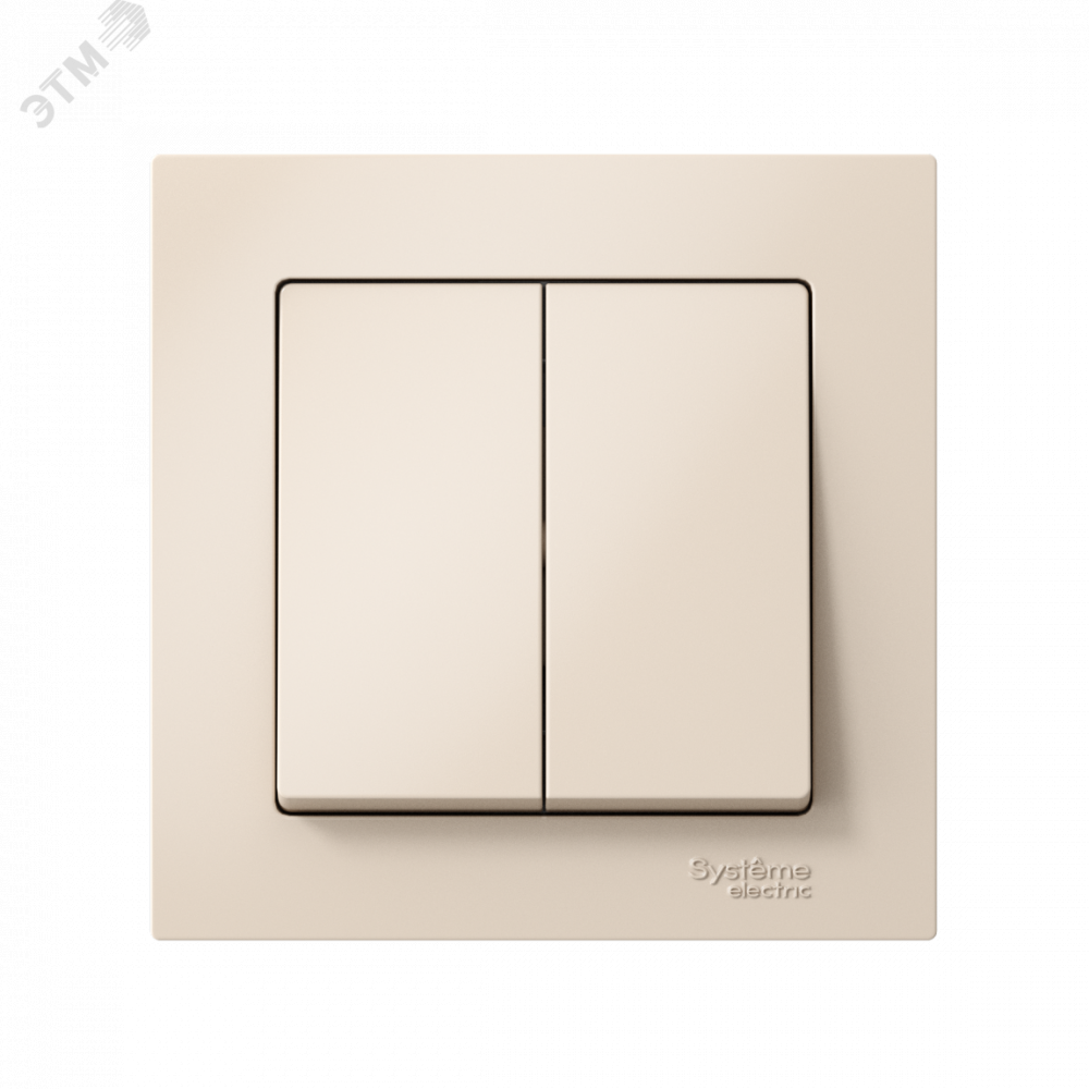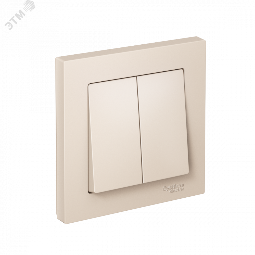 Выключатель Systeme Electric (ранее Schneider Electric) серии AtlasDesign (в сборе, цвет бежевый) 2-клавишный подходит для сетей 250 В, на ток 10 А.