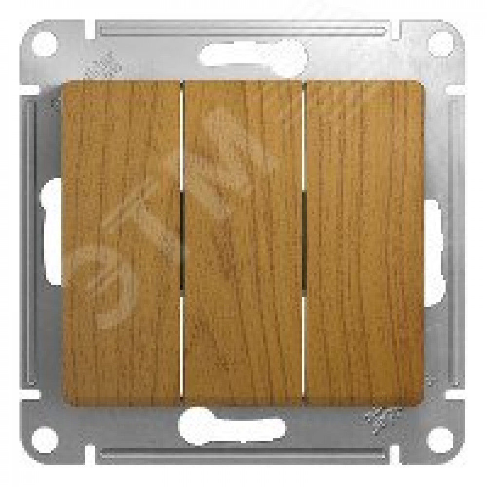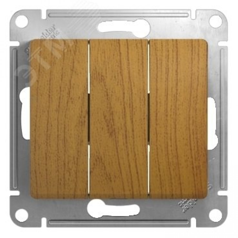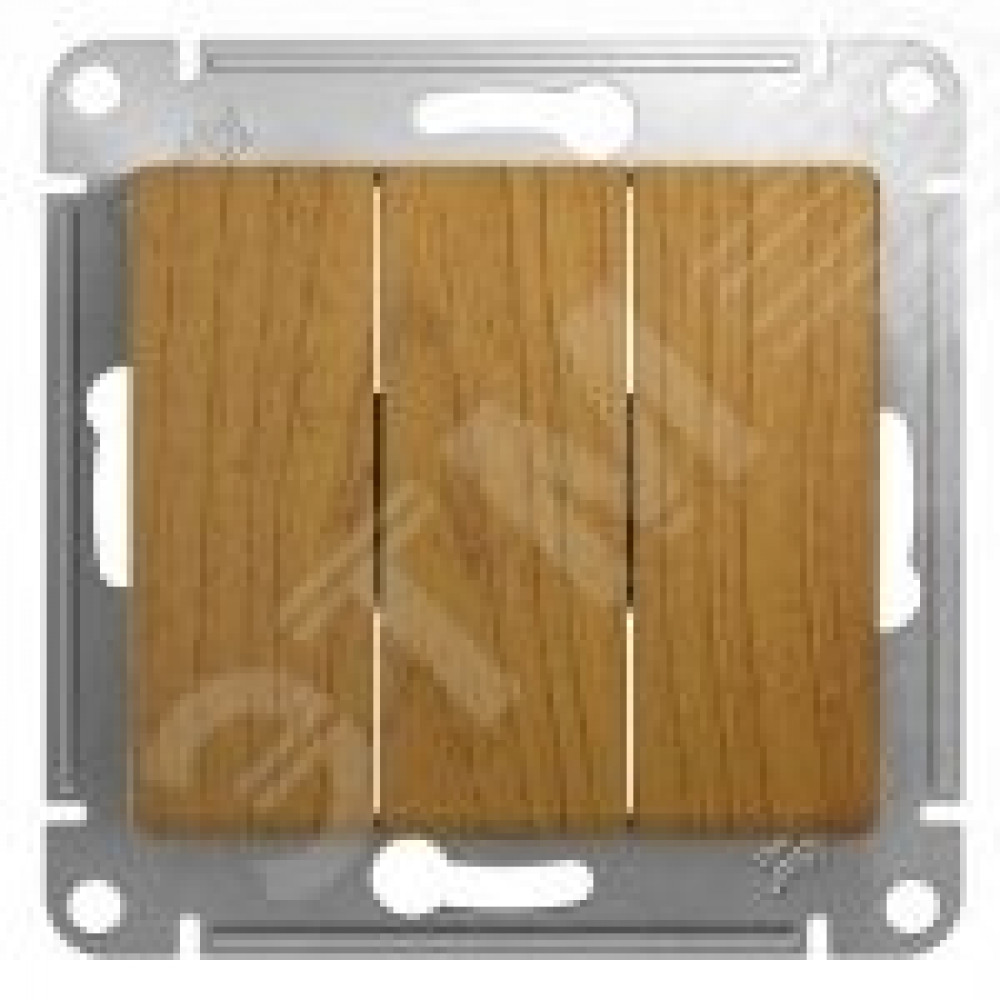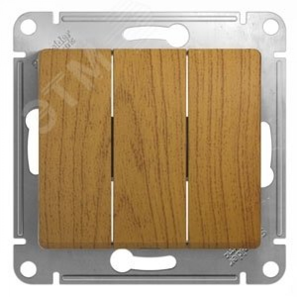 Механизм Glossa (цвет дерево дуб) выключателя 3-клавишного подходит для сетей 250 В, на ток 10 А.