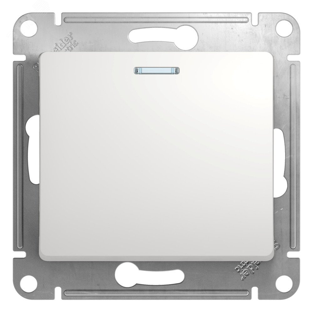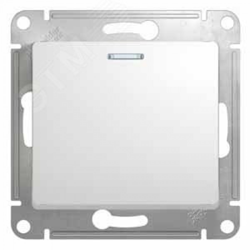 Механизм Glossa (цвет белый) выключателя 1-клавишного с подсветкой подходит для сетей 250 В, на ток 10 А.