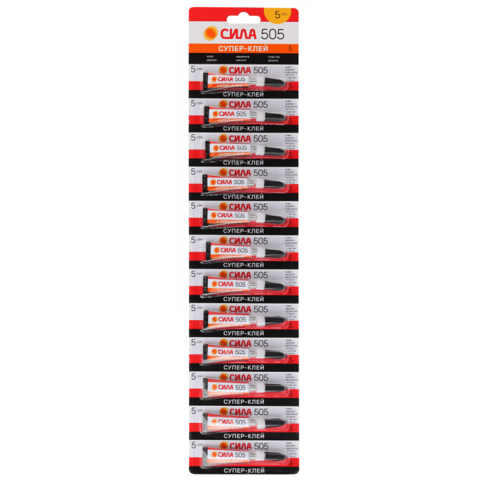 Популярный супер-клей СИЛА 505 на ленте, объединяющей 12 тюбиков по 3 гр. Индивидуальная упаковка каждого тюбика представляет собой отрывной от общей ленты блистер. Супер-клей СИЛА 505 – проверенный клей с отличными свойствами. Обладая высокой концентрацией цианакрилата и хорошей текучестью, он особенно эффективен для склеивания металлических деталей. Успешно применяется для пластика, дерева, кожи, резины, керамики, фарфора. Экономично расходуется и застывает за 5 секунд. Высококачественный супер-клей по доступной цене.