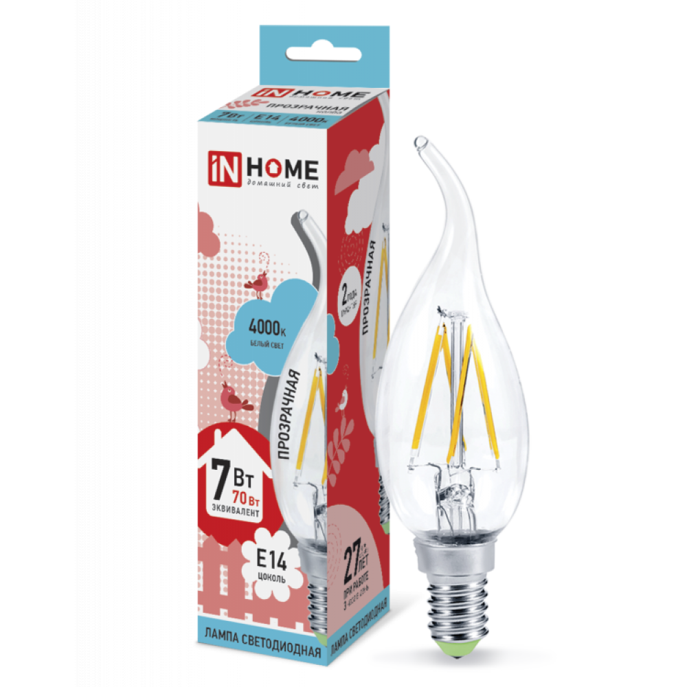 Описание Лампа светодиодная LED-СВЕЧА НА ВЕТРУ-deco 7Вт свеча на ветру прозрачная 4000К нейтр. бел. E14 810лм 230В 4690612007670