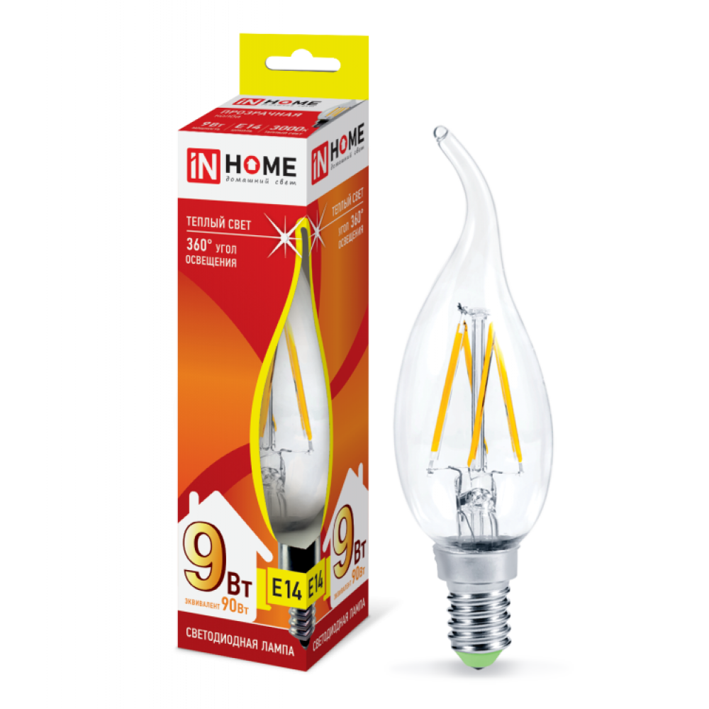 Описание Лампа светодиодная LED-СВЕЧА НА ВЕТРУ-deco 9Вт свеча на ветру прозрачная 3000К тепл. бел. E14 1040лм 230В 4690612026220