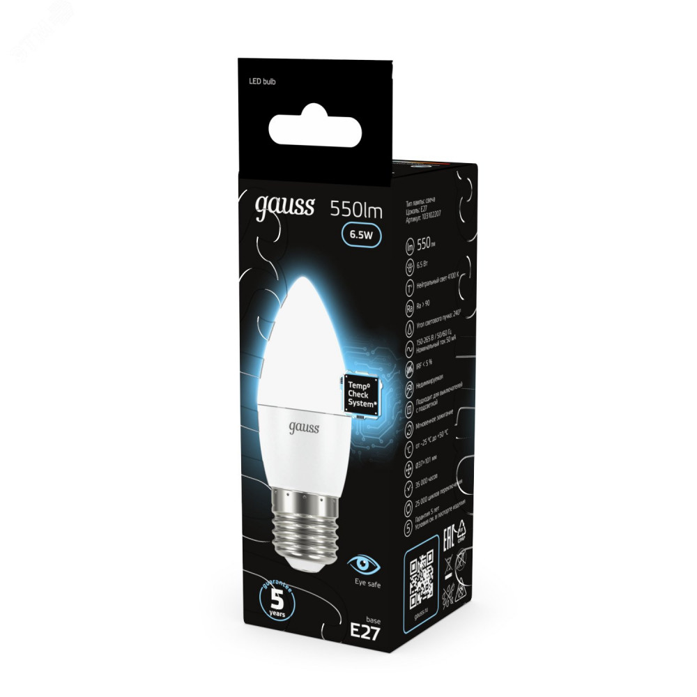 Описание Лампа светодиодная Black 6.5Вт свеча 4100К нейтр. бел. E27 550лм 103102207