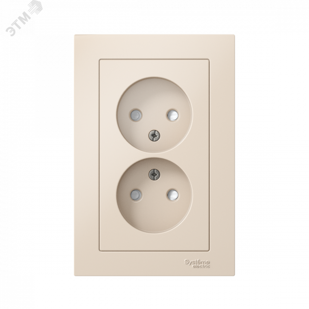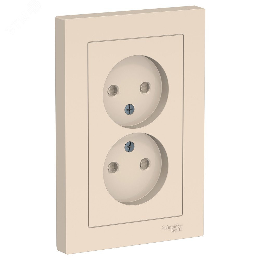 Розетка двойная Systeme Electric (ранее Schneider Electric) серии AtlasDesign (в сборе, цвет бежевый) без заземления со шторками подходит для сетей 250 В, на ток 16 А.